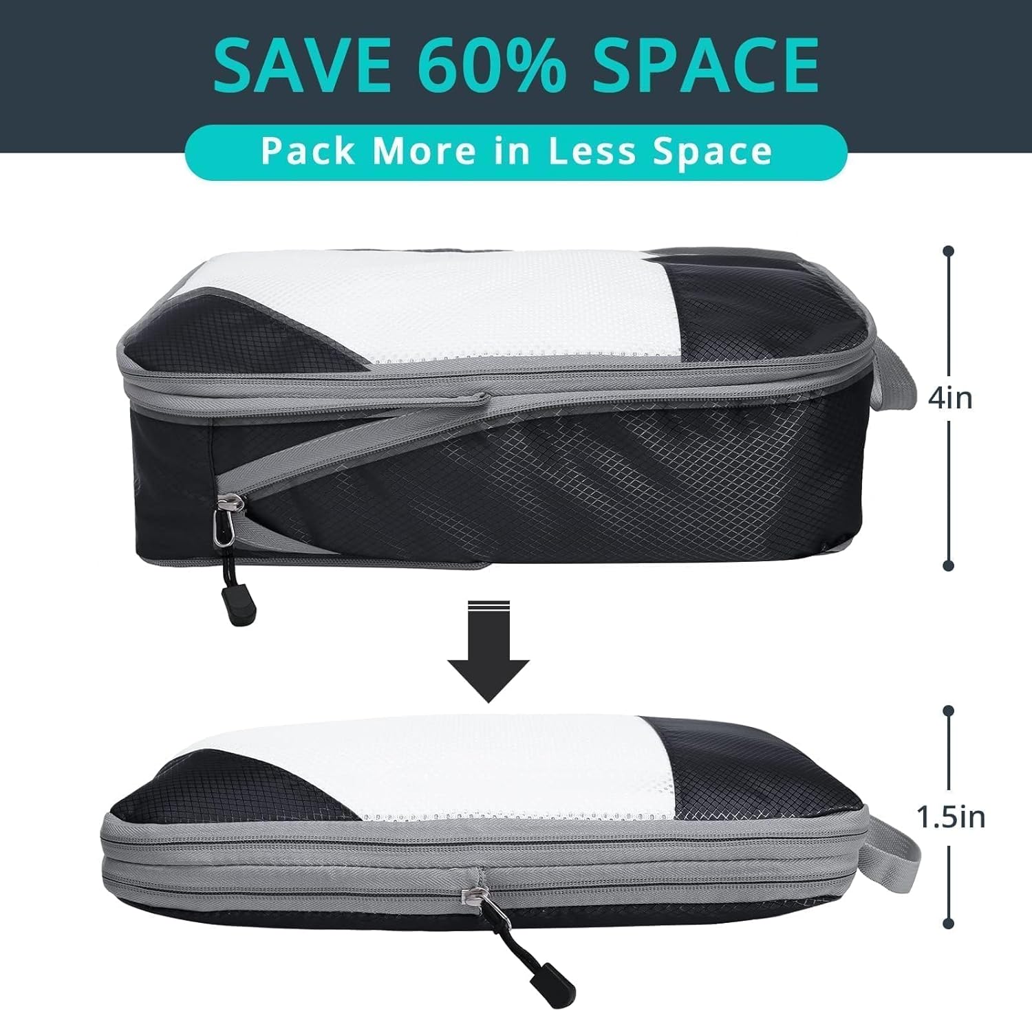Maximize Luggage Space: With NICOSHOW compression packing cubes, you can pack smarter and fit more into your luggage. Our two-zipper system packing cube can compress clothes and save up to 60% of space
