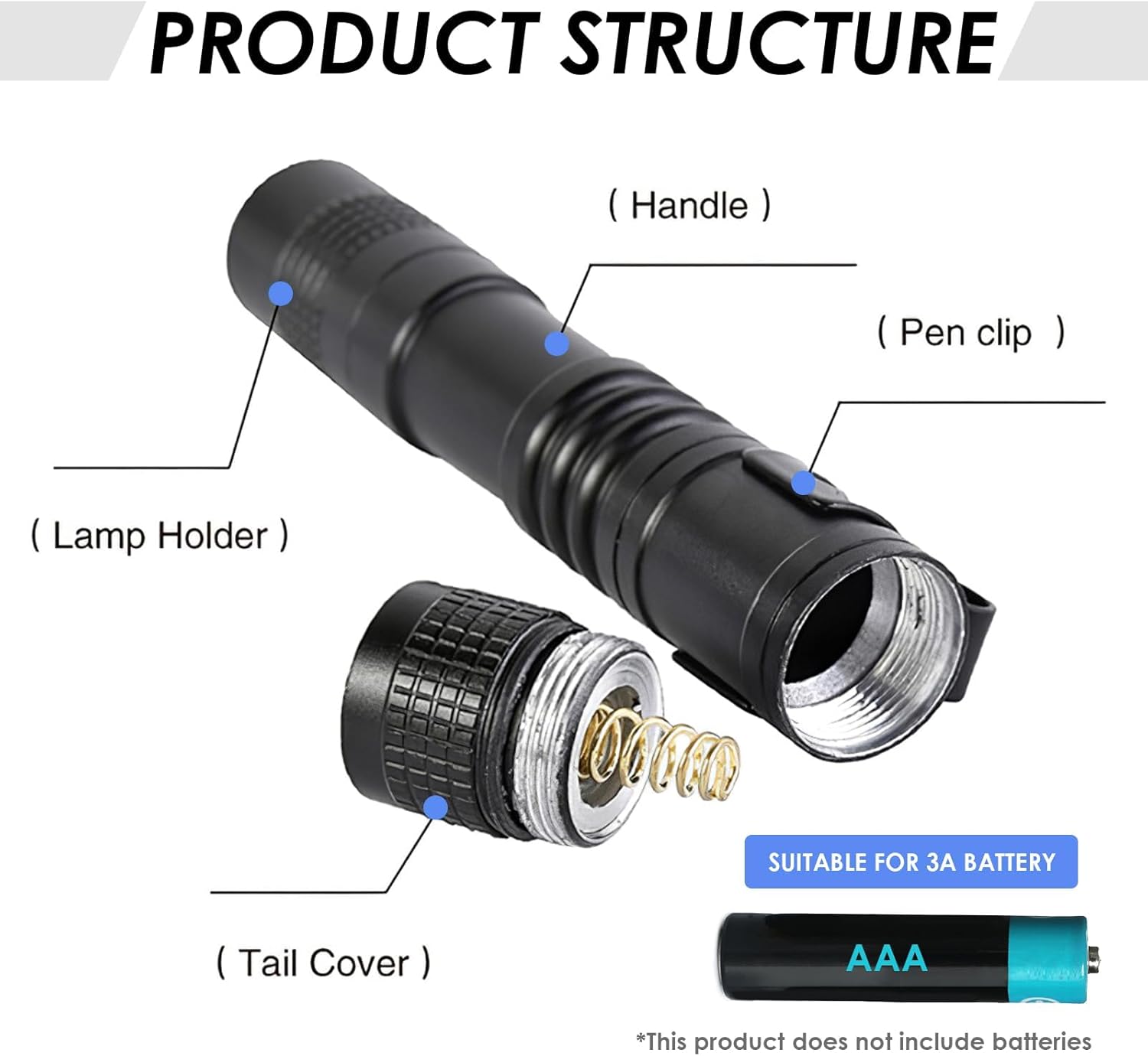 Reliable 500-Lumen Emergency Lighting: Powered by an advanced LED lamp bead, each mini flashlight delivers up to 500 lumens of bright white light with a focused beam reaching up to 150 meters and is powered by standard AAA batteries (NOT INCLUDED), providing dependable illumination during power outages, emergency situations, inspections, and home repairs
