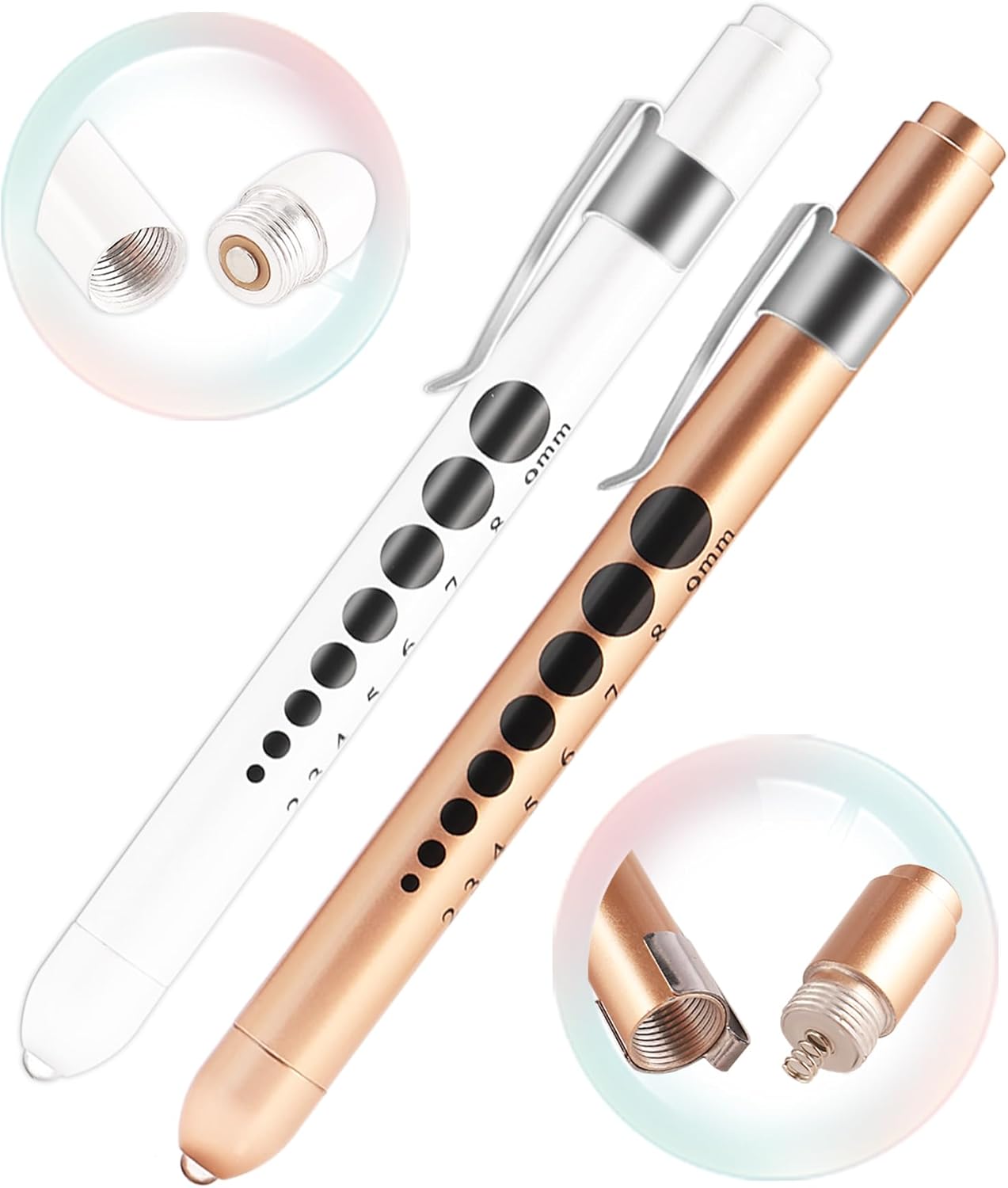 ✔ Penlights: a 5cm-ruler chart, pupil gauge, metal pocket clip.