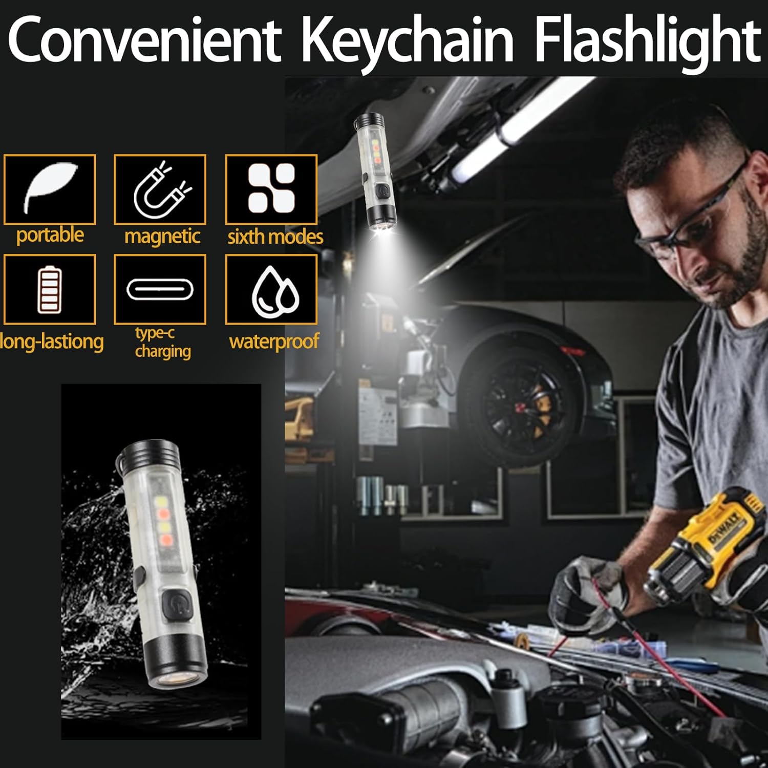 Convenient USB Type-C Rechargeable: This tiny EDC keychain flashlight simplifies your life with its USB Type-C rechargeable feature. Whether you are at home, in the car, or on the go, recharging your rechargeable Mini keychain flashlight is effortless and efficient, ensuring that you are never left in the dark.