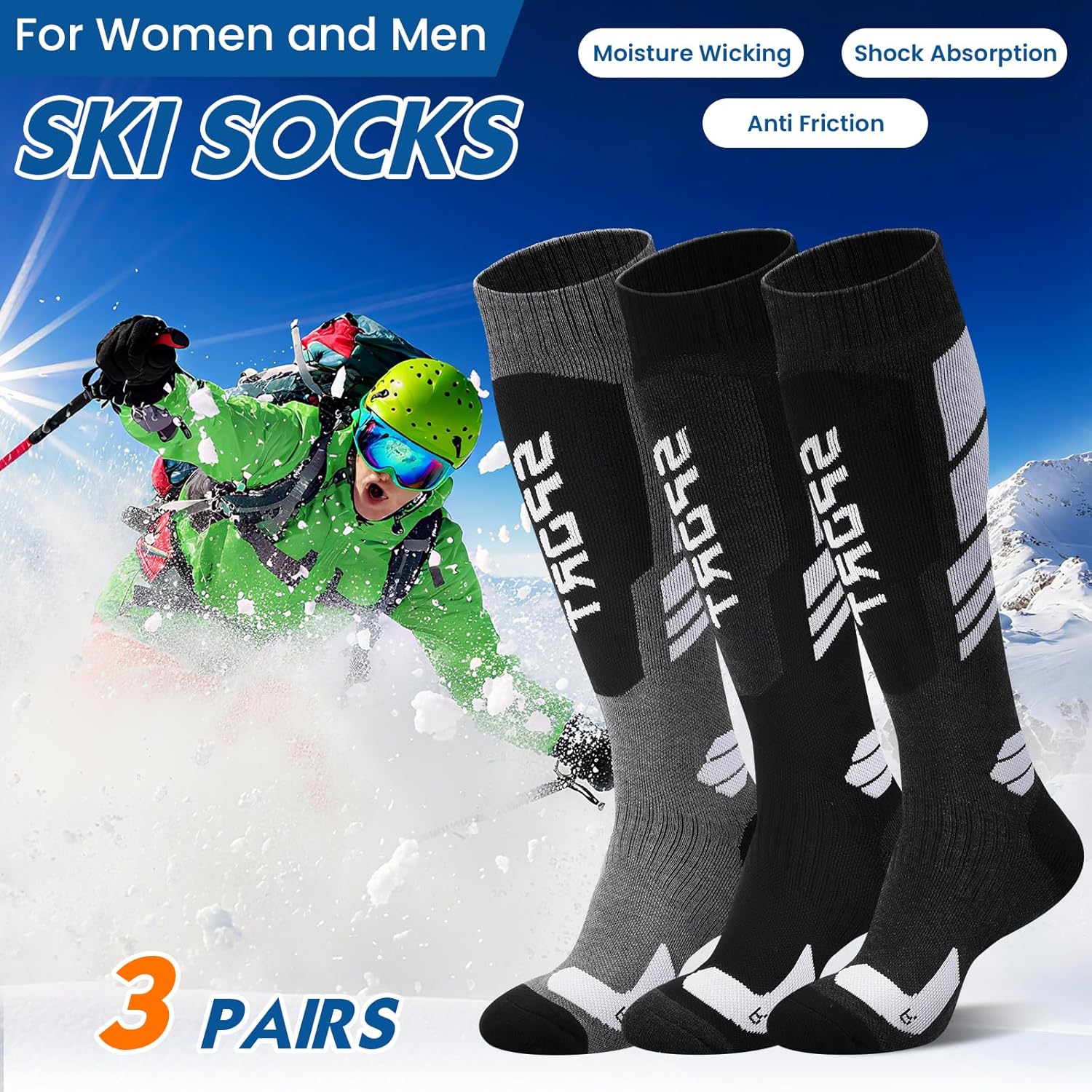Ski Socks – 3 Pairs Warm Merino Wool Snowboard Socks Thermal Sock for Mens Womens in Cold Weather for Skiing Hiking