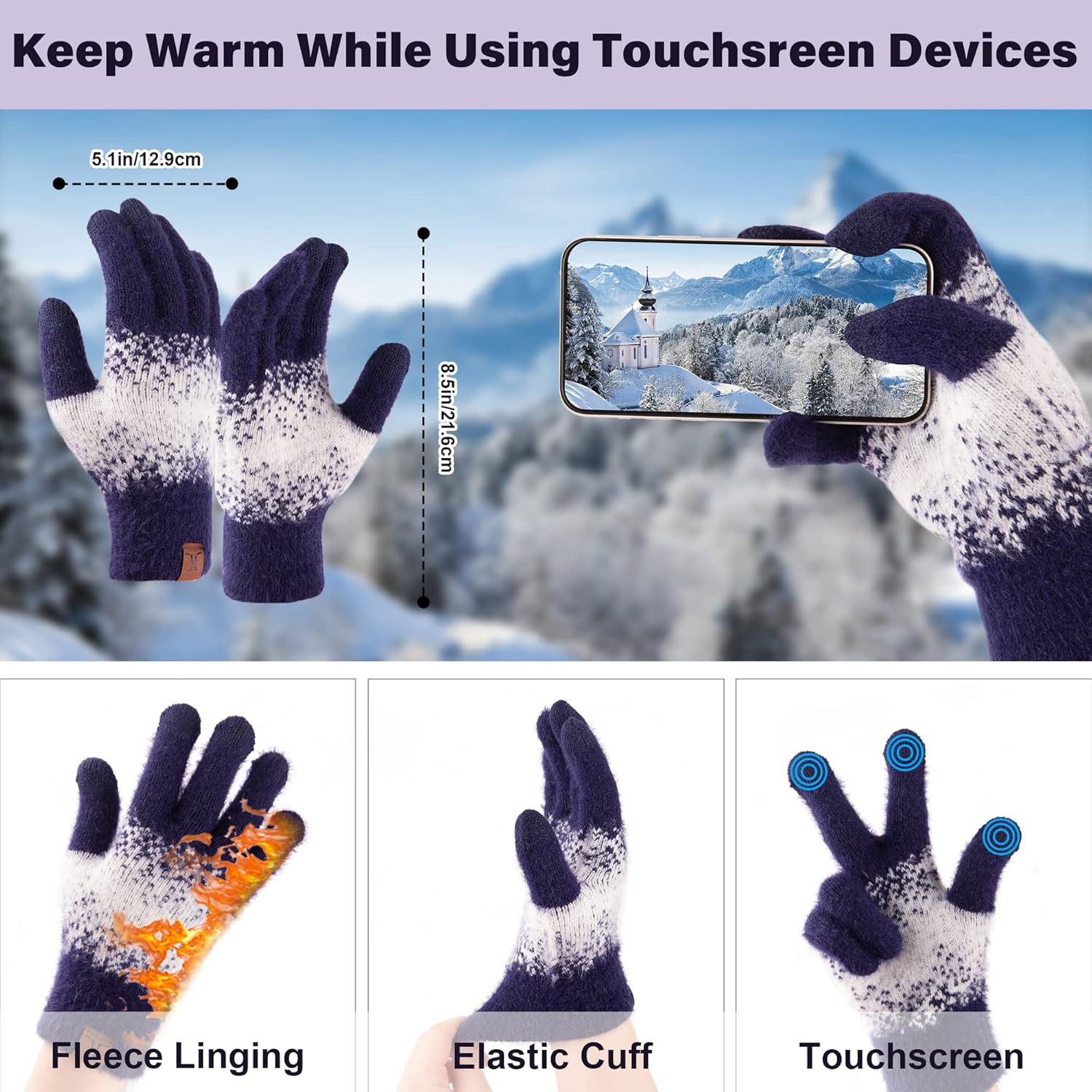 The thickened elastic cuffs that close around the hands of our touchscreen gloves protect against cold winds at all times!