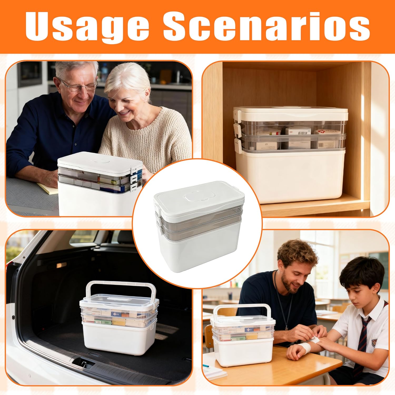 【 Portability & Versatile Use】Featuring a sturdy, ergonomic carry handle, it transitions effortlessly from a stationary cabinet organizer to a travel medicine box you can take anywhere. Its versatile design makes it ideal for organizing not just medicines and a comprehensive first aid kit, but also for corralling cosmetics, art supplies, small tools, or craft essentials. Whether you’re keeping it under the bathroom sink, moving it from room to room, or packing it for a vacation, this multi-purpose storage box ensures your most important items are always neatly organized and readily accessible wherever life takes you.
