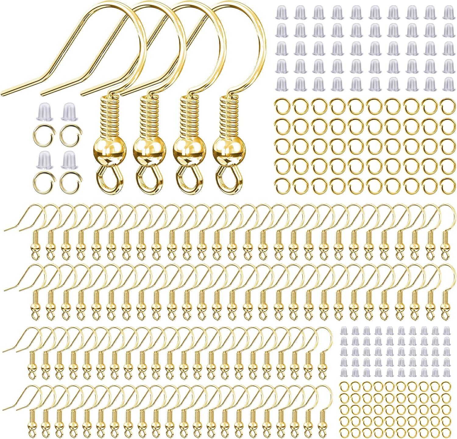 【300 Pcs Earring Making Kit – Great Value】Our diy earring kit includes 100 gold earring hooks, 100 gold jump rings and 100 silicone earring backs. With an ample supply of components for spares and replacements, it offers long – term usability