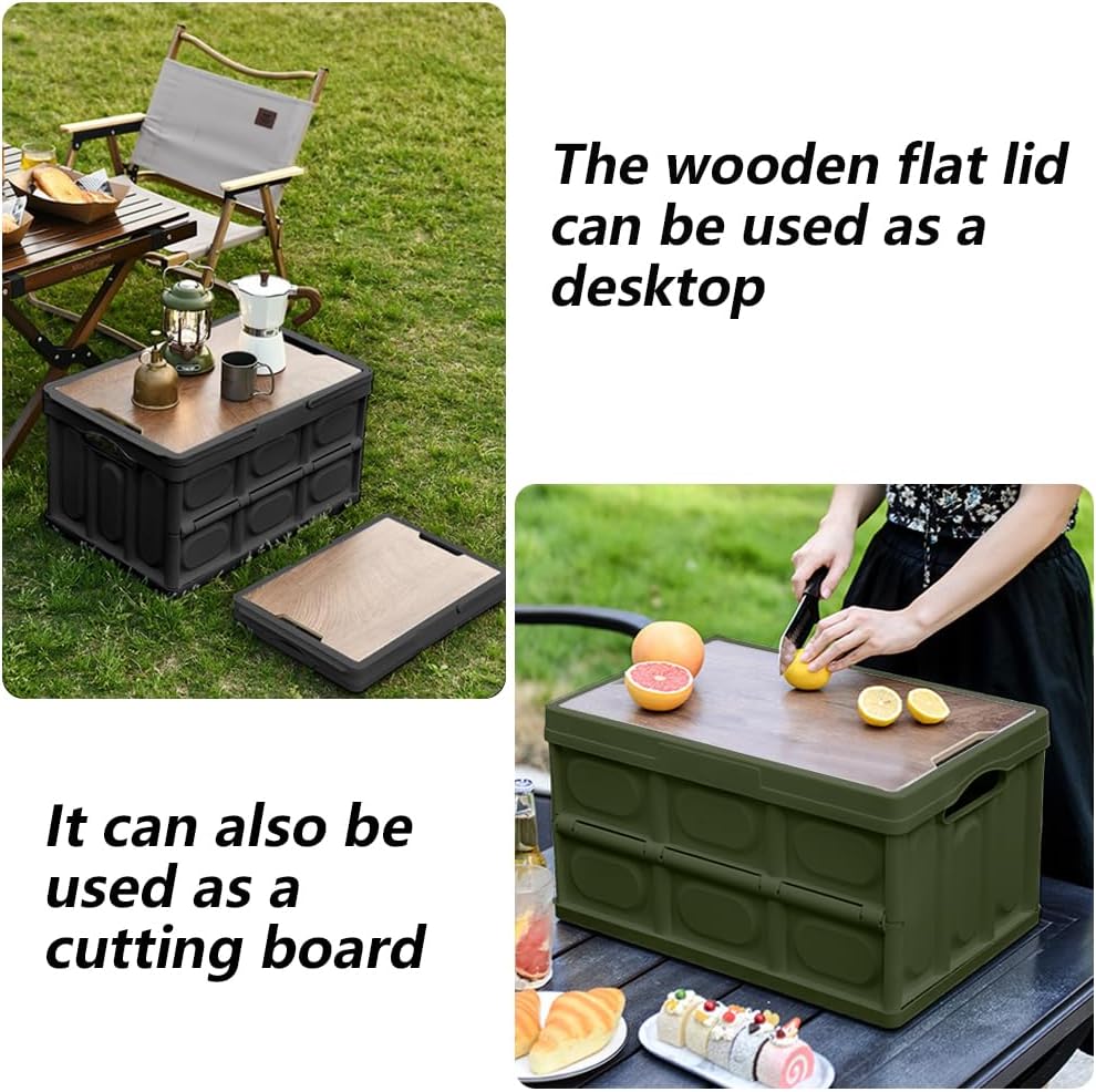 【Flat Lid, Can Be Used As Desktop】Unlike other folding boxes, our storage boxes come with a flat wooden lid that allows you to put food and drinks on it or use the lid as a cutting board when camping.