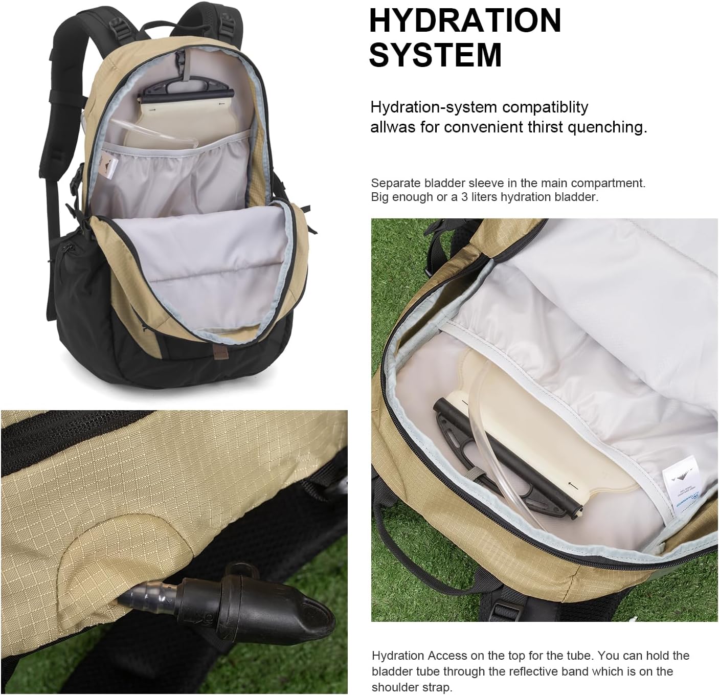 【Spacious And Organized Storage Space】: With a 30L capacity for 1-2 day hike or 3 day trip, our travel backpack features a multi-compartment design including one main roomy compartment with a interior sleeve for hydration bladder,One front pocket with buckle closure, one front pocket and 2 side pockets.