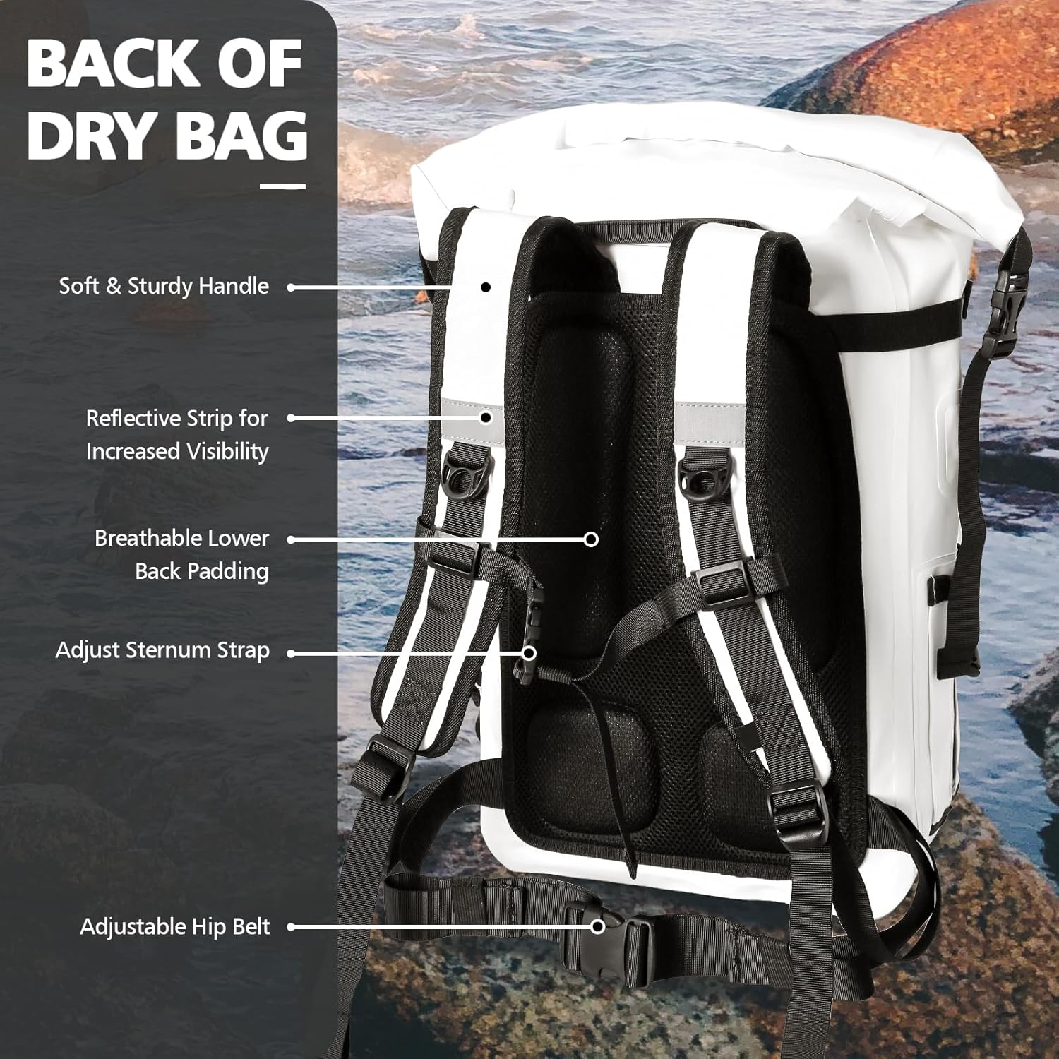 【VERSATILE OUTDOOR USAGE】This multifunctional dry storage bag is perfect for outdoor activities such as hiking,camping, kayaking, boating, rafting, swimming, fishing,skiing and beach etc. It offers reliable protection against water, sand, snow and dirt, keeping your gear dry even in the toughest conditions