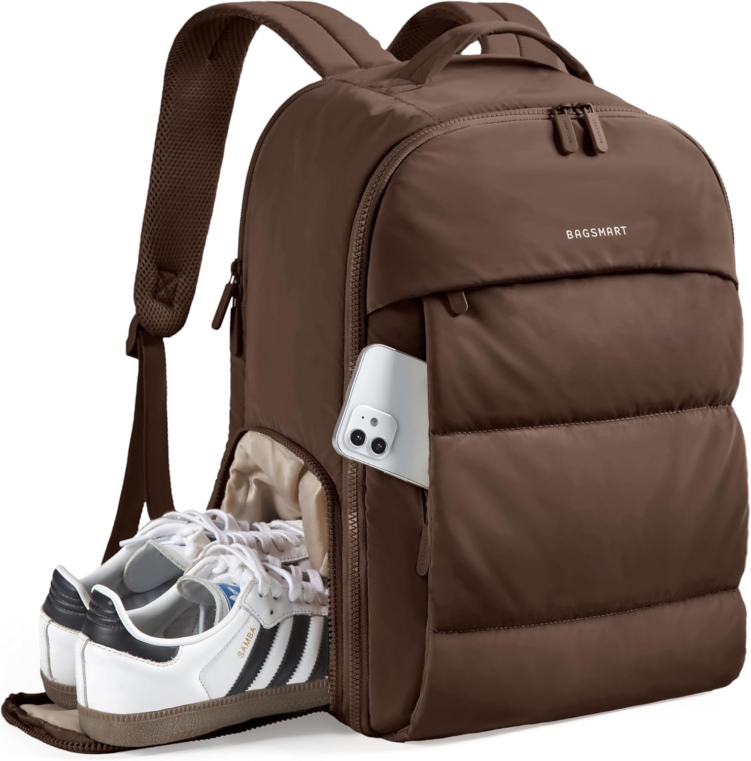 Ample Compartment: BAGSMART Travel Backpack provides generous room and diverse compartments, effortlessly segregate and store your 15.6″ laptop, books, supplies. Meets airline carry-on requirements. Dimensions:17.3×12.6×7.9 inches