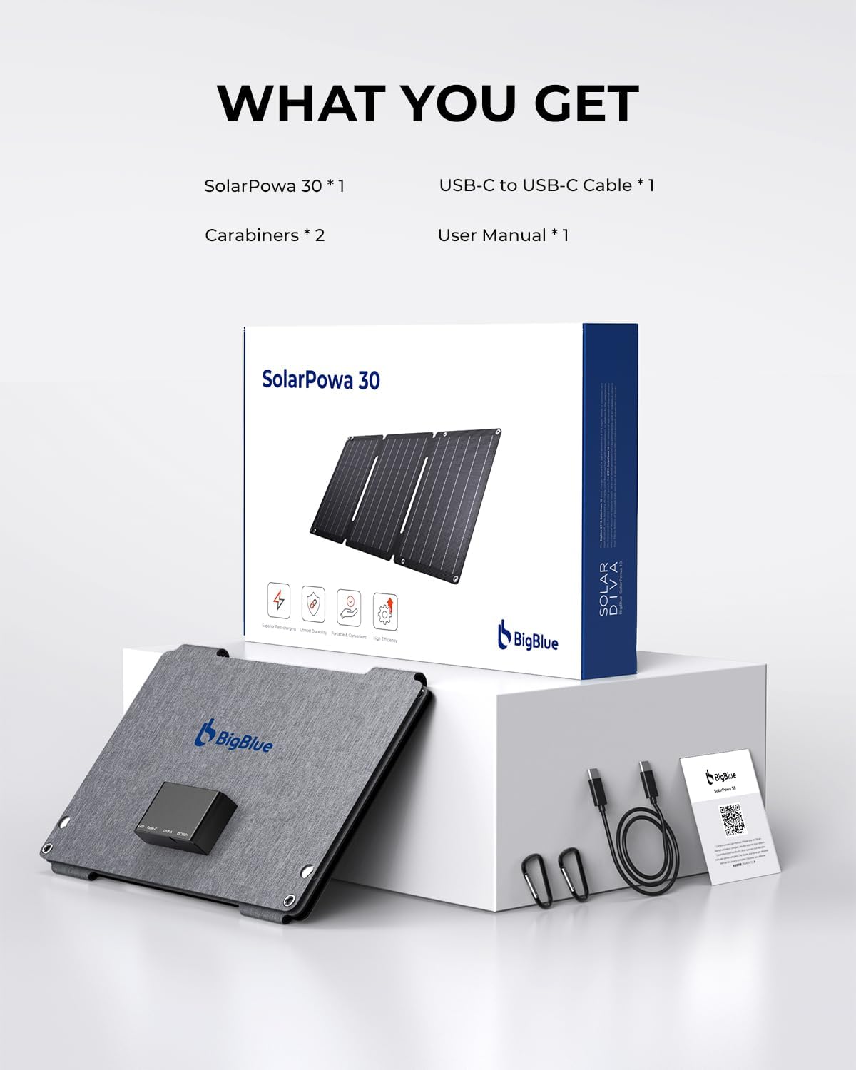 🥾 [Upgraded] BigBlue 30W Solar Panel Charger with Fast Charging USB-A and USB-C, DC Ports, SolarPowa 30 Portable Solar Panel, IP68 Waterproof, Compatible with iPhone, Samsung, iPad, Small Power Station — Review, Key Features & Current Price