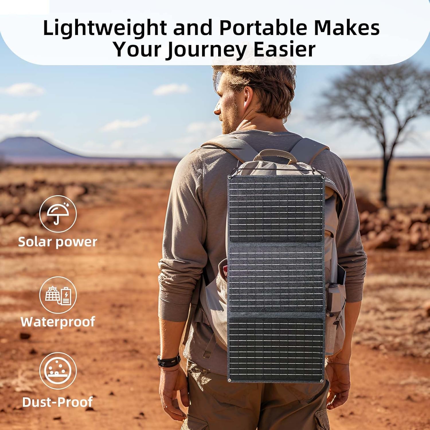 Compact & Portable Design: The foldable and lightweight design makes it easy to carry and store. Whether you’re trekking in the mountains or on a road trip, this solar panel can be conveniently packed and carried anywhere.