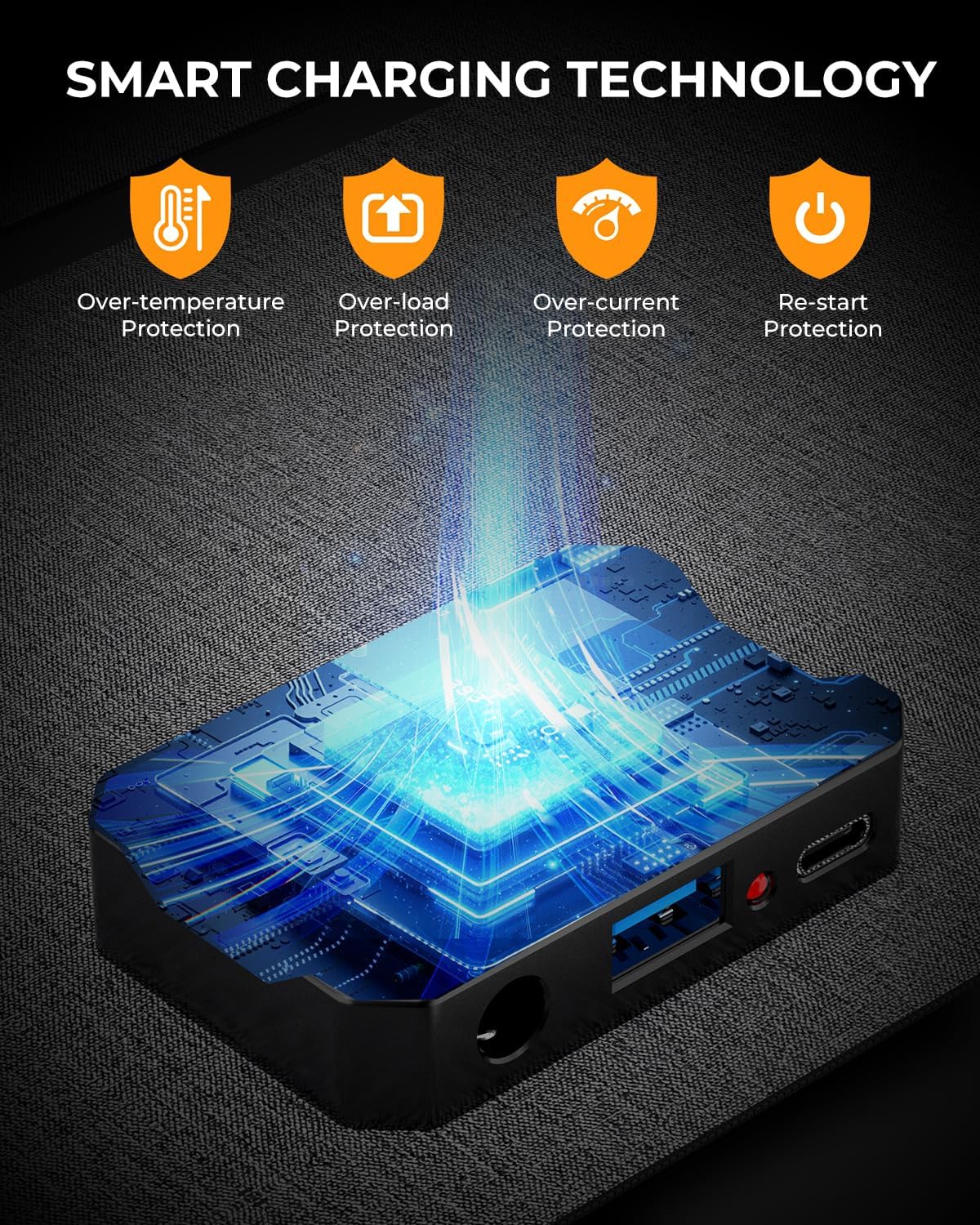 High Solar Energy Conversion: This foldable solar panel is made of monocrystalline silicon, which can efficiently convert light energy into electrical energy with a high conversion rate of up to 24%. The built-in smart chip can intelligently identify your devices, preventing overcharging and overloading. It maximizes the charging speed.