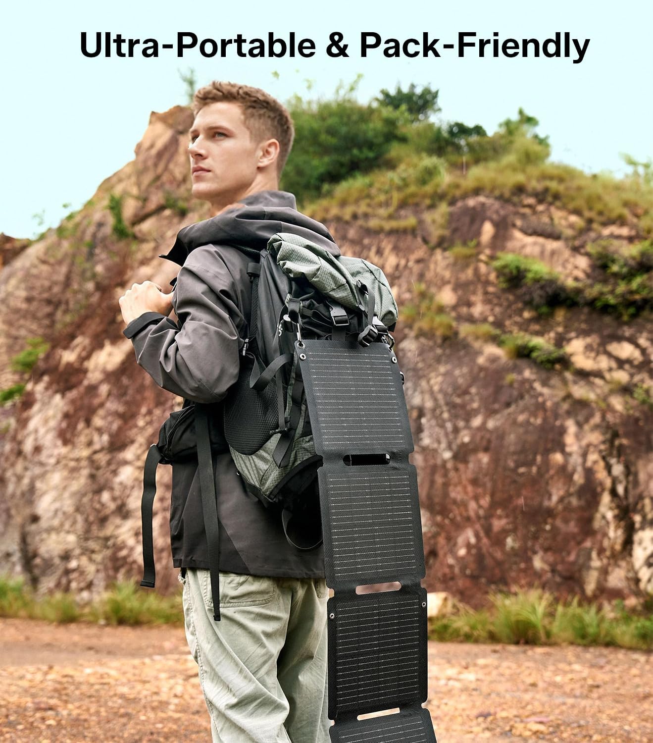 Ultra-Portable & Pack-Friendly eighing just 1.76 lbs (0.8 kg) and folding down to a compact 9.1″ x 8.9″ —about the size of a paperback book—it fits anywhere. The included carabiner lets you easily clip it to your backpack, tent, or a tree for hands-free solar charging on the move