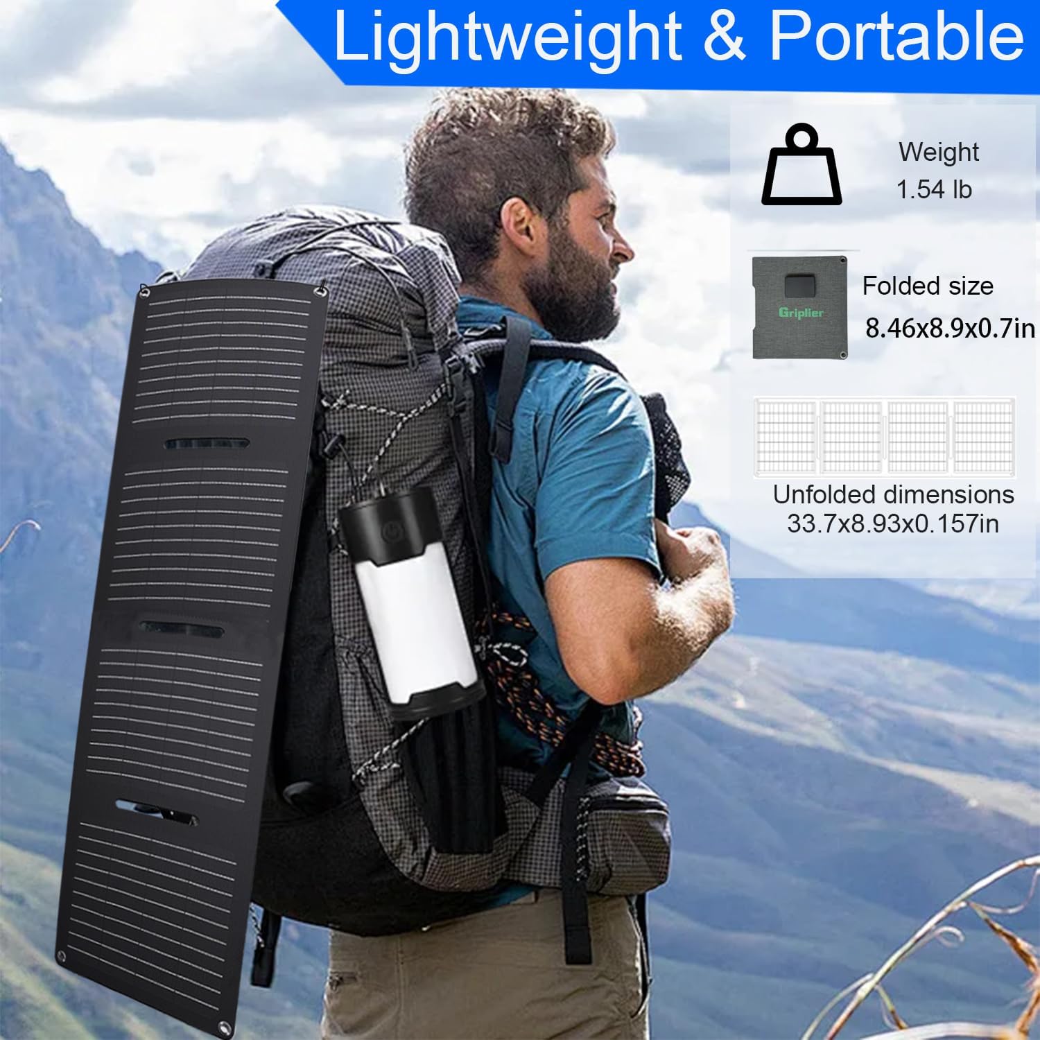 【Ideal for Outdoor Enthusiasts】Griplier 30W small solar panels are designed for campers,,Hiking and outdoor enthusiasts, providing reliable power for your electronic devices and appliances, even in remote areas.