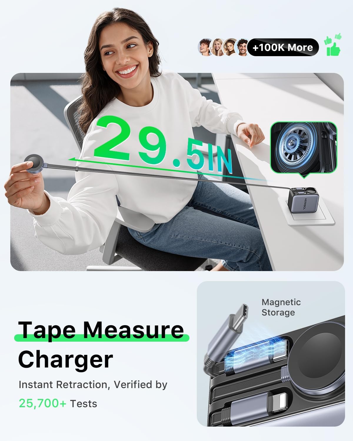 【HERRBOL 30W Retractable Wall Charger】Our retractable charger comes with wall plug and three 29.5in retractable charging cables, allowing you to say goodbye to tangled cables. It’s suitable for travel vacation, home, business trips, office, and more. A perfect gift for anyone with electronic devices. What are you waiting for? Choose our HERRBOL retractable charger for your family, lover, friends, or colleagues!