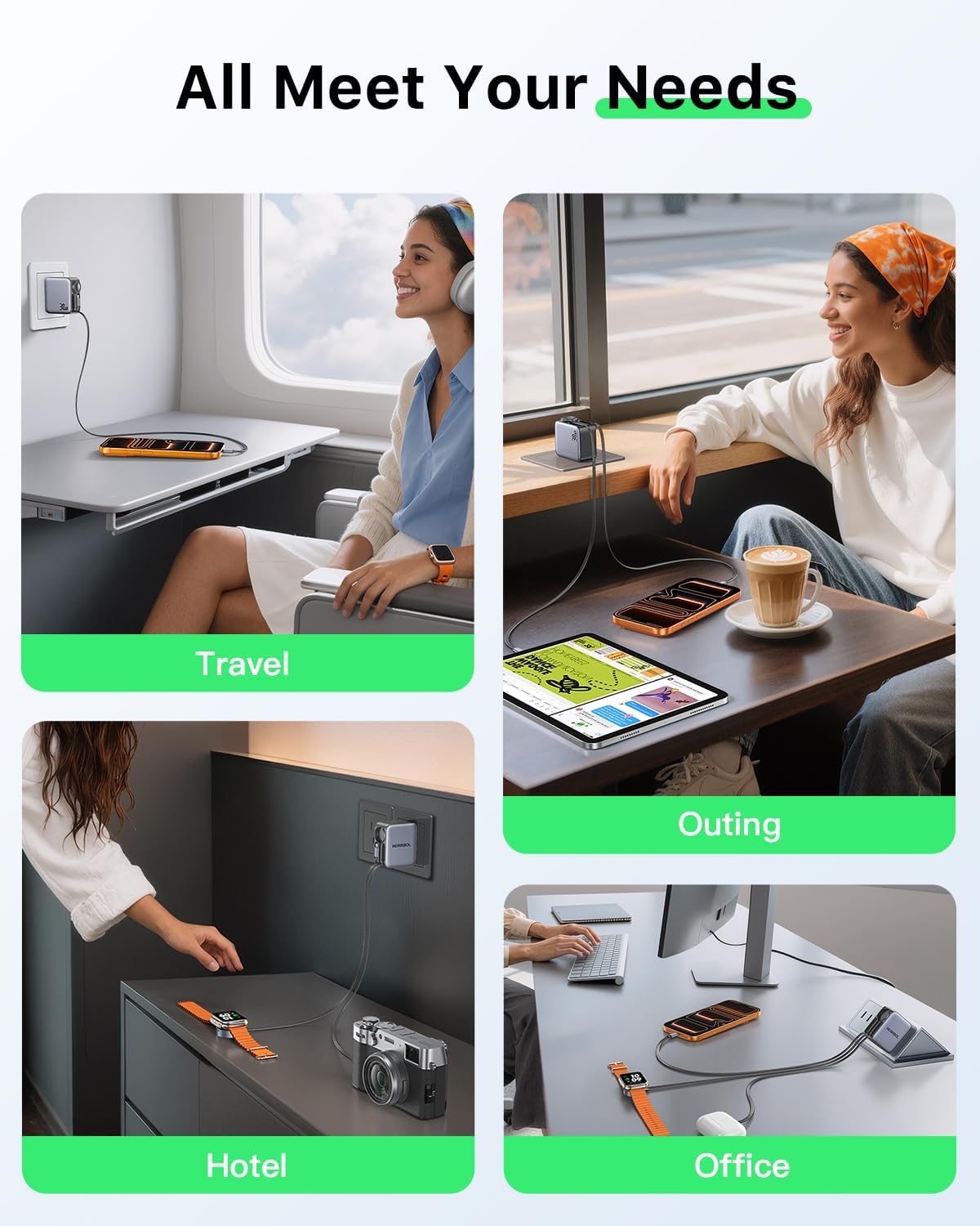 【All in One Multi Charger】The retractable charger with AC wall plug has iWatch magnetic charger, lightening and type-c cable. The usb c charger block supports iPhone 17/16/15 series/Samsung/AirPods/iPad and other usb c charging devices. The Apple Watch charger is compatible with iWatch series. The retractable lightening cable is compatible with iPhone 12/11-6 series. We’ve got all your charging needs covered.