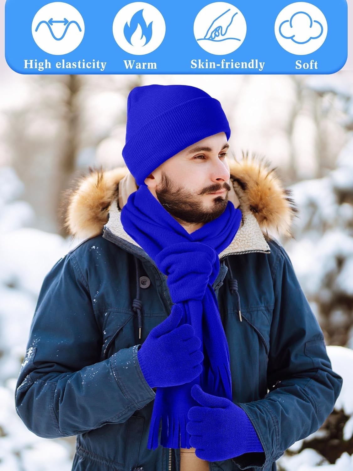 The winter beanies are equipped with cuffs, which are extended to a lower position to cover the ears and keep you warm. The glove is thick, providing you with warmth and comfort the whole day