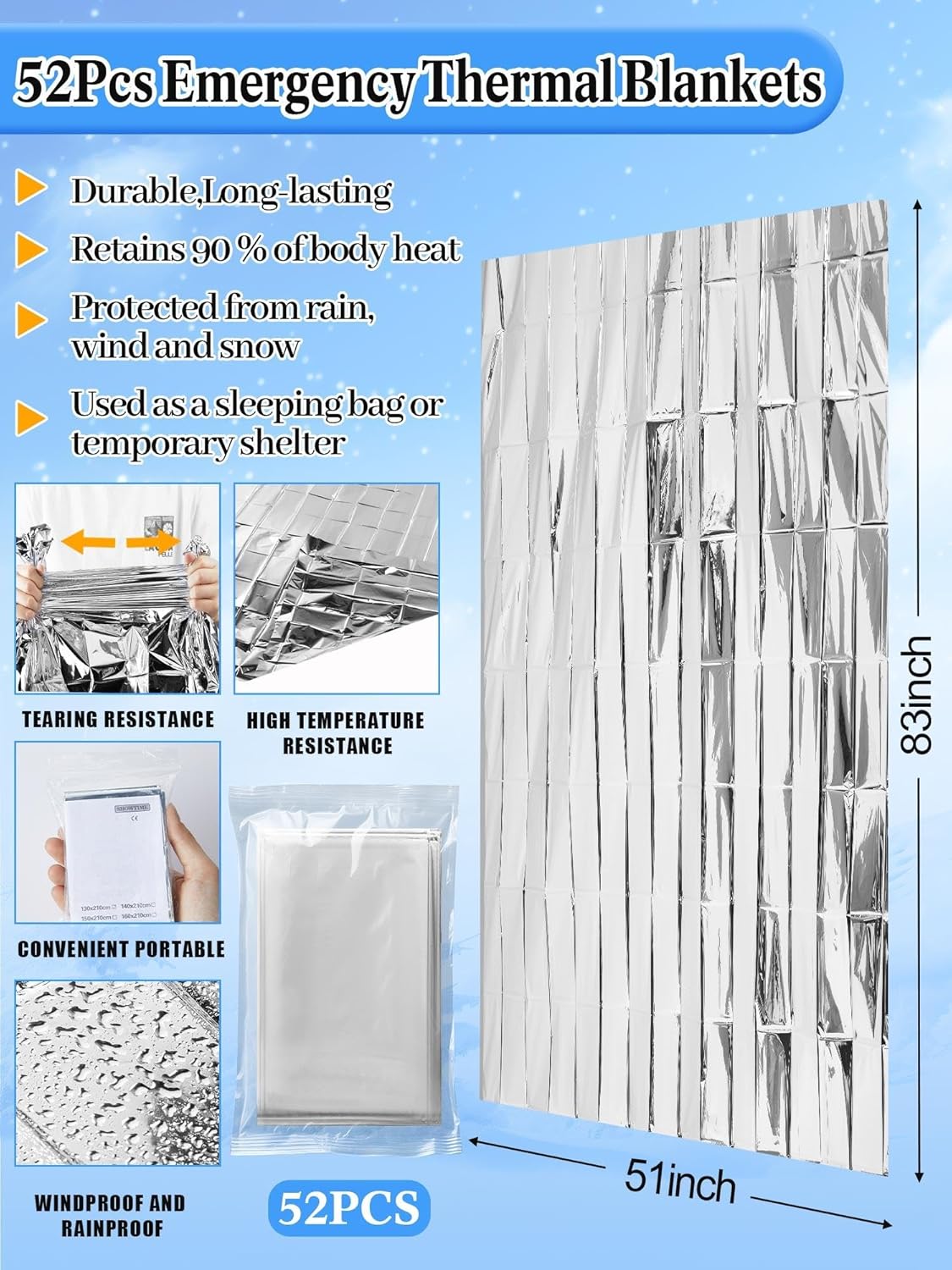 52 Pcs emergency blankets