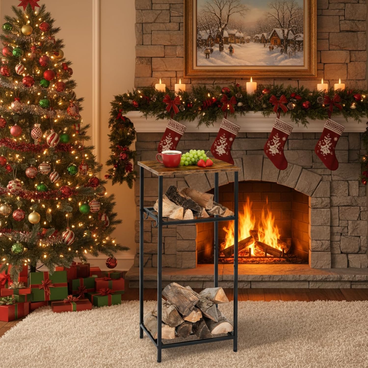 Large Capacity and Space Efficient:firewood holder indoor about at 32.3″H x 15.8″L x 11.8″W,The standing design takes up little space, while the multi-tiered design provides ample storage for stacking firewood, and the top can also be used as a tabletop coffee stand, maximizing space utilization