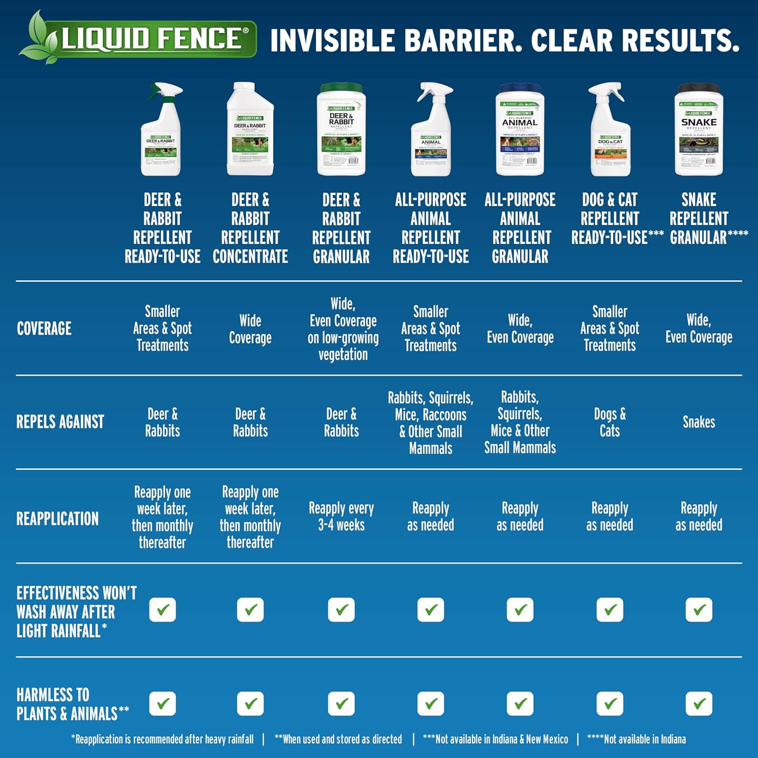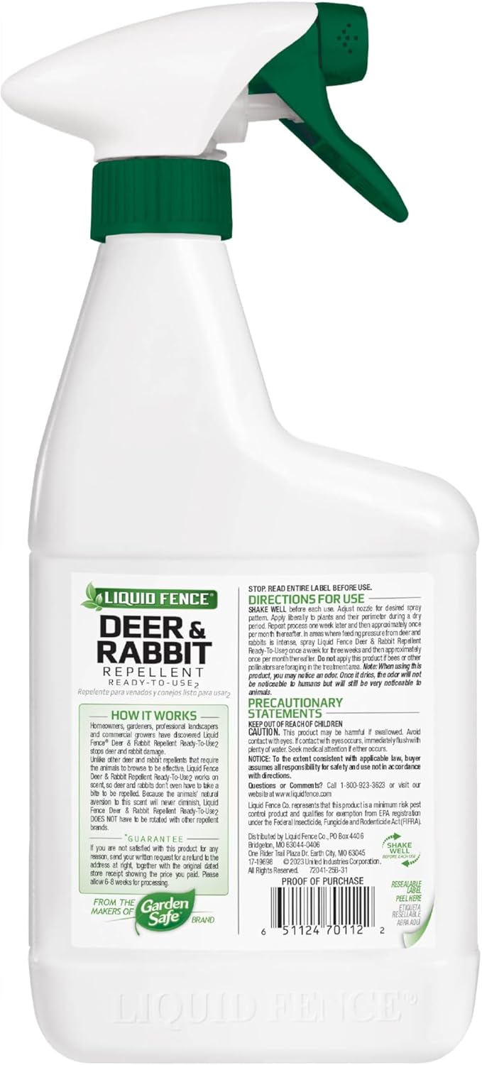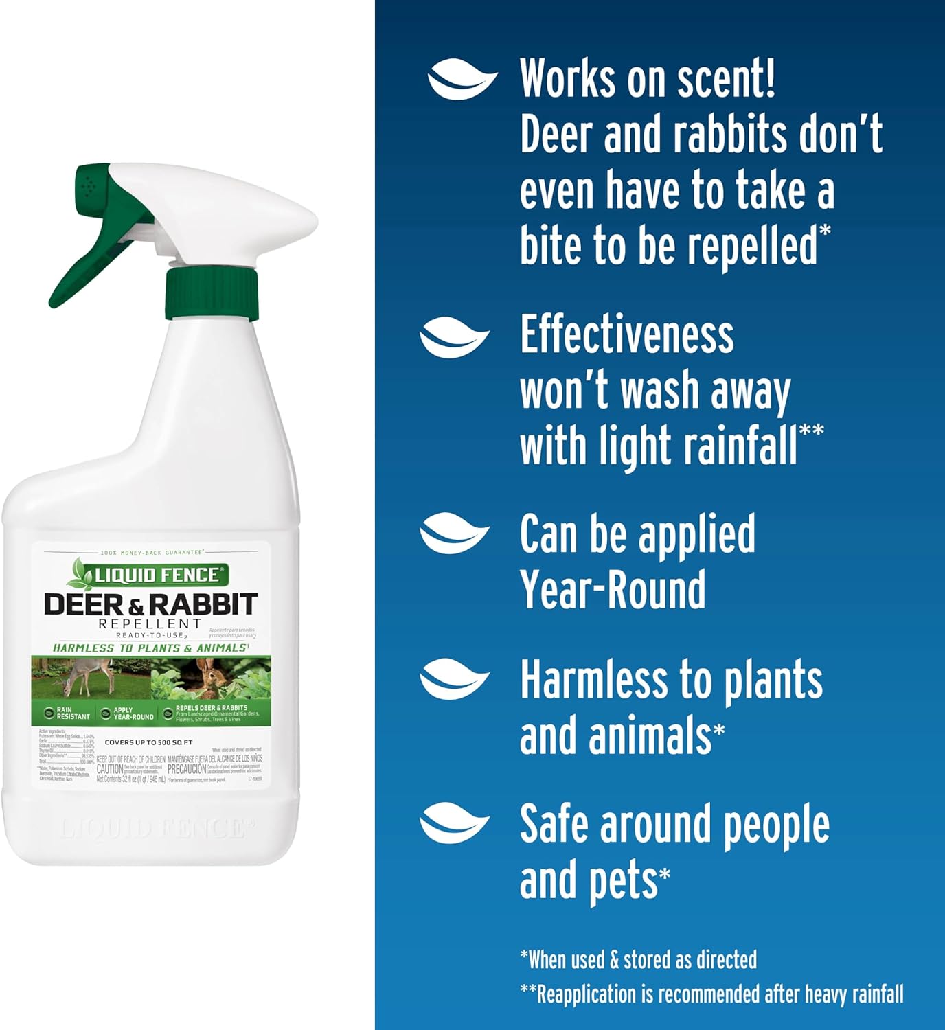 APPLY YEAR-ROUND: No need to rotate with other repellent brands – animals’ natural aversion to Liquid Fence Deer and Rabbit Repellent Ready-to-Use2 will never diminish