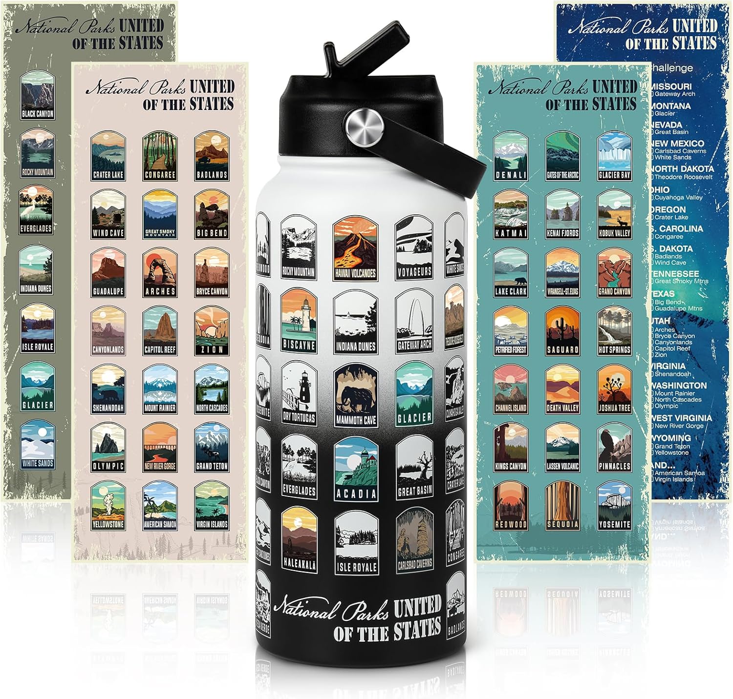 ★DURABLE ENGRAVED BOTTLE: The national parks water bottle features permanently engraved designs, highlighting all 63 unique stickers. This durable bottle guarantees a lasting impression, whether it’s adorned with stickers or standing alone as a decorative piece.