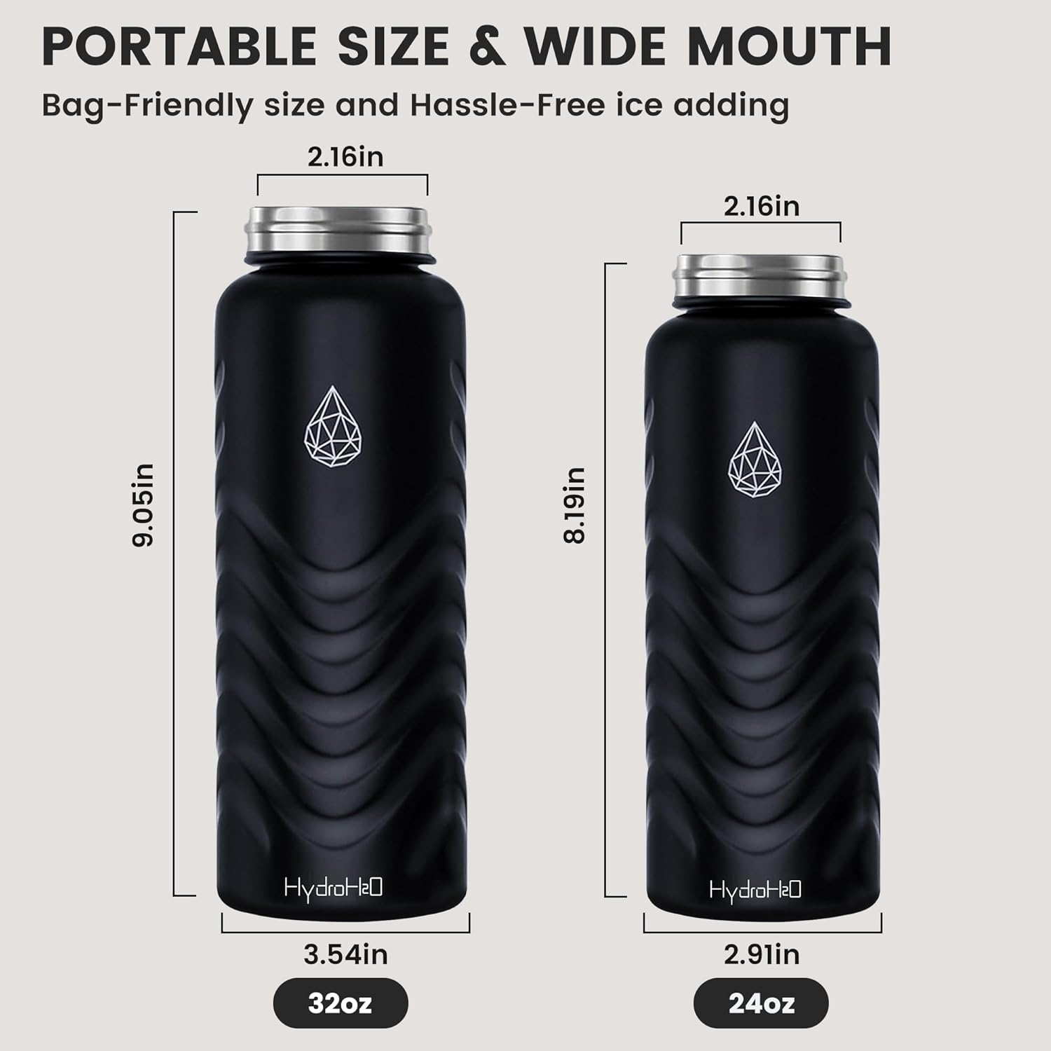 2 WIDE MOUTH LIDS: Spout Lid & Handle Lid – Wide mouth bottles for easy ice adding. Flex handle for comfortable carrying. Includes a simple straw (replaceable and easy to clean).Premium Insulated water bottles for adults to use in work, school, or sports.