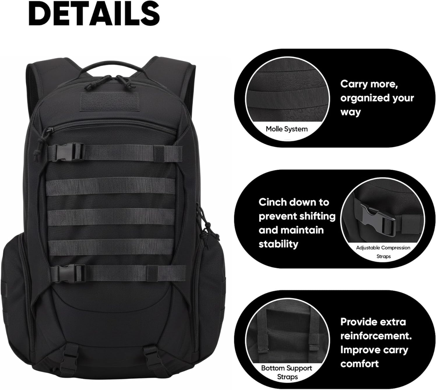 This 35L tactical backpack is the perfect military & hiking pack. Built from rugged, water-proof 600D polyester, this bag is a durable rucksack for any mission. The ideal size for a 3-day assault pack, it’s one of the best army backpacks available
