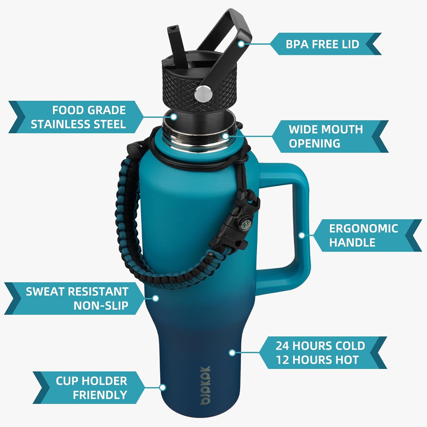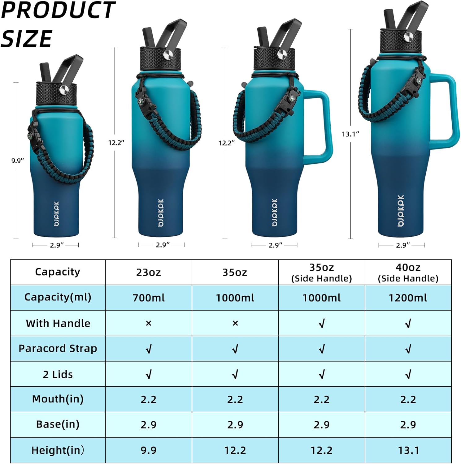 π₯Ύ BJPKPK Insulated Water Bottles with Straw Lid, 35oz Metal Water Bottle with 2 lids & Paracord Strap, Double Wall Stainless Steel Tumbler with Handle, Reusable Cups, Mugs, Thermo, Sea β Review, Key Features & Current Price
