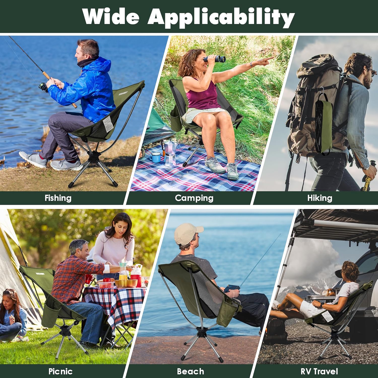 ★【 Easy to fold and clean 】 Our chairs that swivel is lightweight and easy to carry. You can fold it in your carry-on luggage. The foldable chairs for outside material makes the surface smooth and easy to clean, and it’s easy to wipe off stains with a damp cloth. In addition, the chair comes with a tote bag. You can take it to camping, barbecues, picnics, fishing, hiking and other outdoor activities. It will help you relieve fatigue and enjoy the outdoors.
