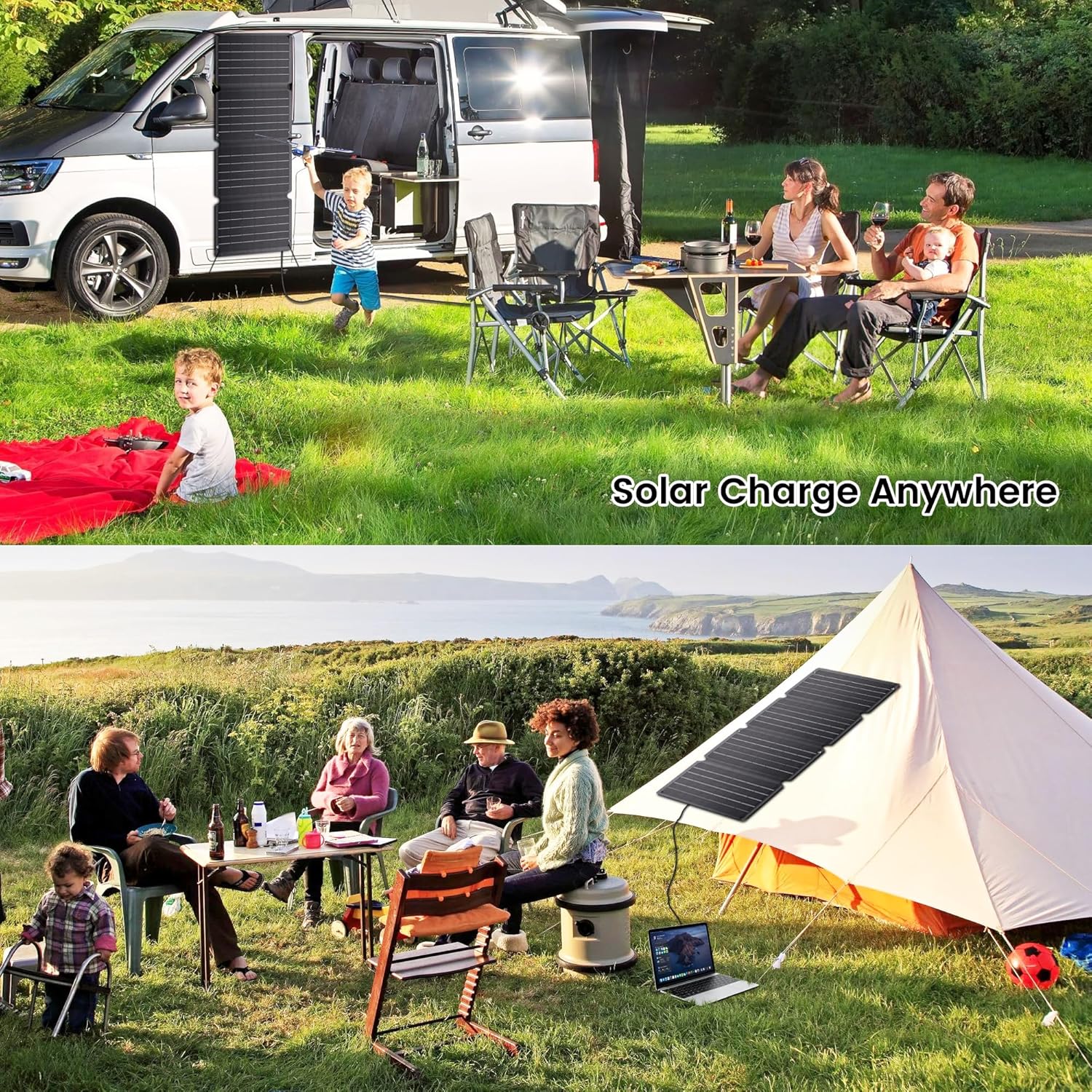 【Portable and foldable, ideal for on the go】When folded, the solar panel has compact dimensions of only 11.6″×8.27″, about the size of a laptop, making it extremely portable. When unfolded, it expands to a generous 33.6 x 11.6 in, allowing for efficient use of solar energy. And thanks to its compact pack size (foldable in the middle), you can easily take it with you on hikes, camping trips, or other adventure