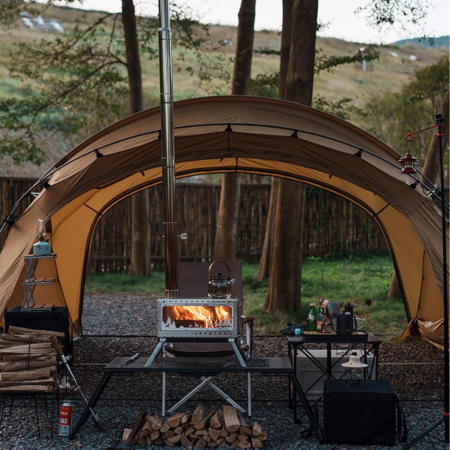 **3F UL GEAR Outdoor Camping Tent Wood Stove 2.0** is crafted from 304 stainless steel, offering excellent corrosion resistance, high-temperature durability, and minimal deformation for long-lasting use. The **high-temperature tempered glass** is both transparent and sturdy, ensuring safe and reliable operation.