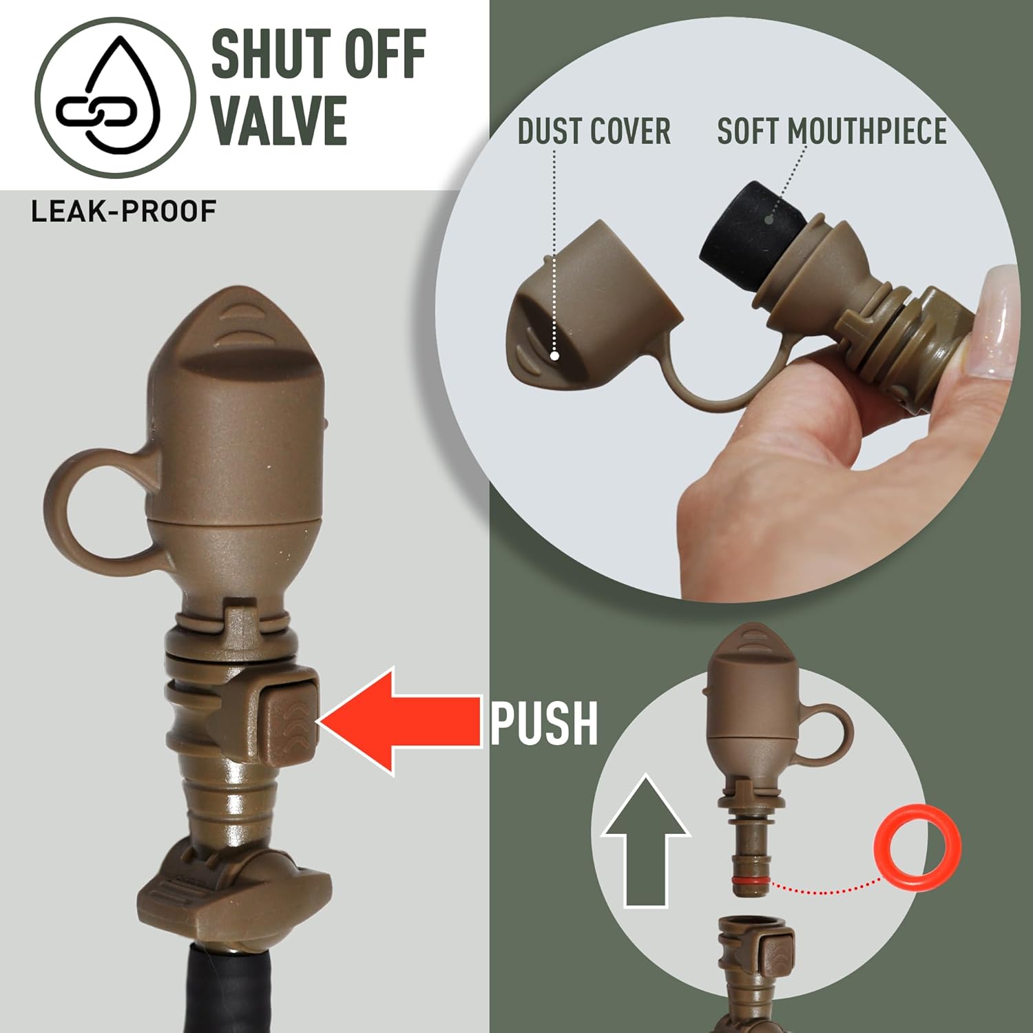 Convenient Shut-Off Valve: The USGI GEAR water bladder tank includes a long-lasting shut-off valve that prevents leaks and lets you easily manage water flow, keeping you dry and hydrated during active use.