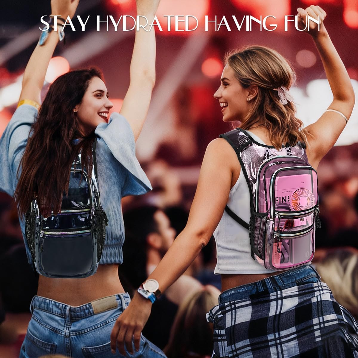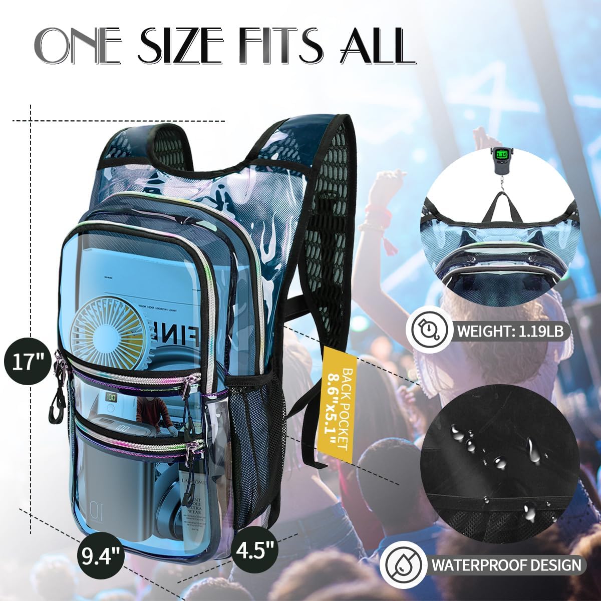 [ UNIQUE ] Minimalist transparent blue hydration backpack, See-through design + rainbow zipper.Stylish and unique bag that is designed with transparent elements, allowing express individuality and unique tastes in daily outfits