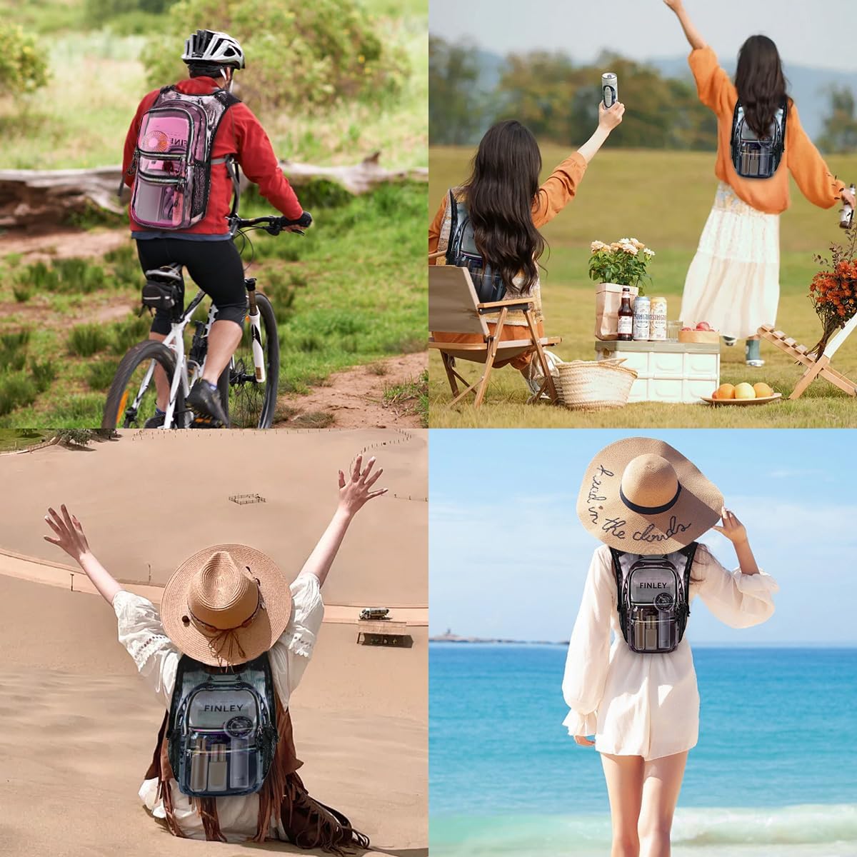 [ UNIQUE ] Minimalist transparent blue hydration backpack, See-through design + rainbow zipper.Stylish and unique bag that is designed with transparent elements, allowing express individuality and unique tastes in daily outfits