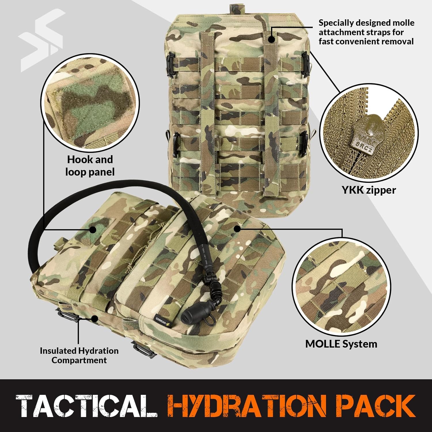 Molle System Compatibility: Designed to work with Molle vests and Molle backpacks, this tactical hydration pack weighs only 0.66 pounds, making it a lightweight and easily portable choice. Perfect for tactical vests such as JPC, SPC, 6094, and more.