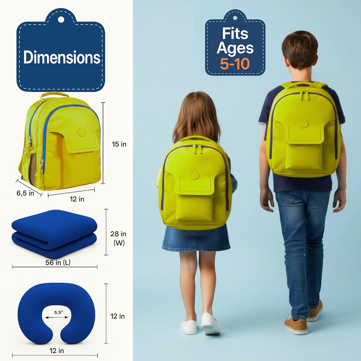 ✅ 3-in-1 Set of Boys and Girls travel backpack & Kids Travel Essentials luggage This premium kids luggage set & kids travel bag includes a kids travel backpack, soft kids travel pillow, and cozy kids travel blanket, serving perfectly as a kids weekender bag and toddler carry on luggage. Designed for both boys and girls, ideal for ages 4–10 and works as toddler airplane travel essentials kids. Ready for kids christmas gifts!