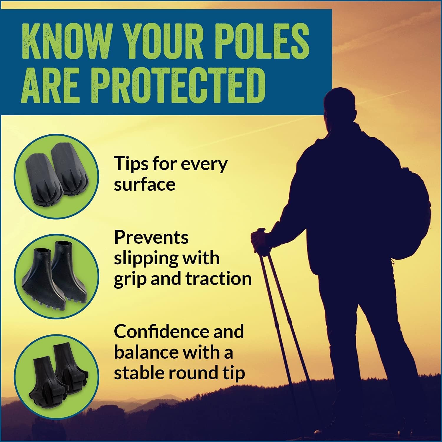 PROTECT YOUR POLES: replacement feet protect your poles and prevent slipping with grip and traction to confidently go anywhere knowing your pole is securely planted