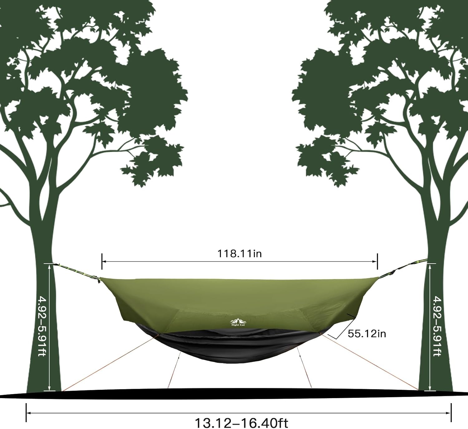 【All-in-One Design】The Night Cat Camping Hammock Tent combines a hammock, rain fly, and bug net into one lightweight, portable system. Perfect for camping, hiking, or jungle adventures, it’s designed for adults who value convenience and durability.