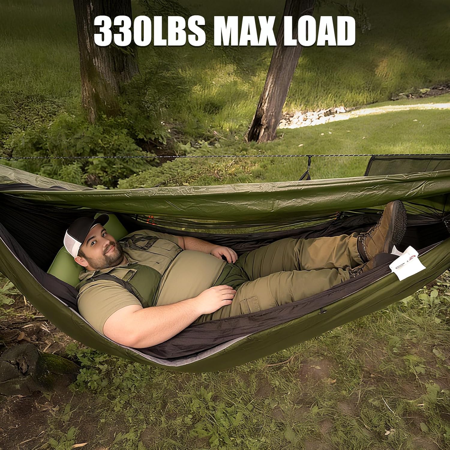 【Heavy-Duty & Lightweight】With a 440-pound weight capacity, this hammock tent is sturdy enough for adults, yet weighs only 4.2 pounds. Its ultralight design makes it perfect for backpacking, hiking, or any outdoor adventure.