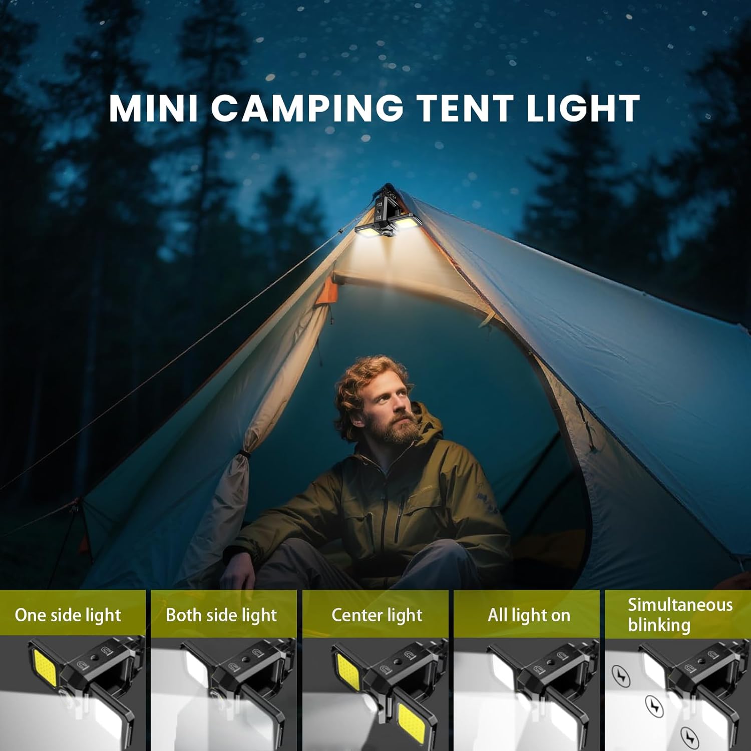 Multiple Light Sources with 5 Modes : Equipped with two side COB light panels and a central LED. 5 lighting modes: single side, double side, center LED only, all lights on, and flashing mode. This provides adaptable brightness for different situations and needs