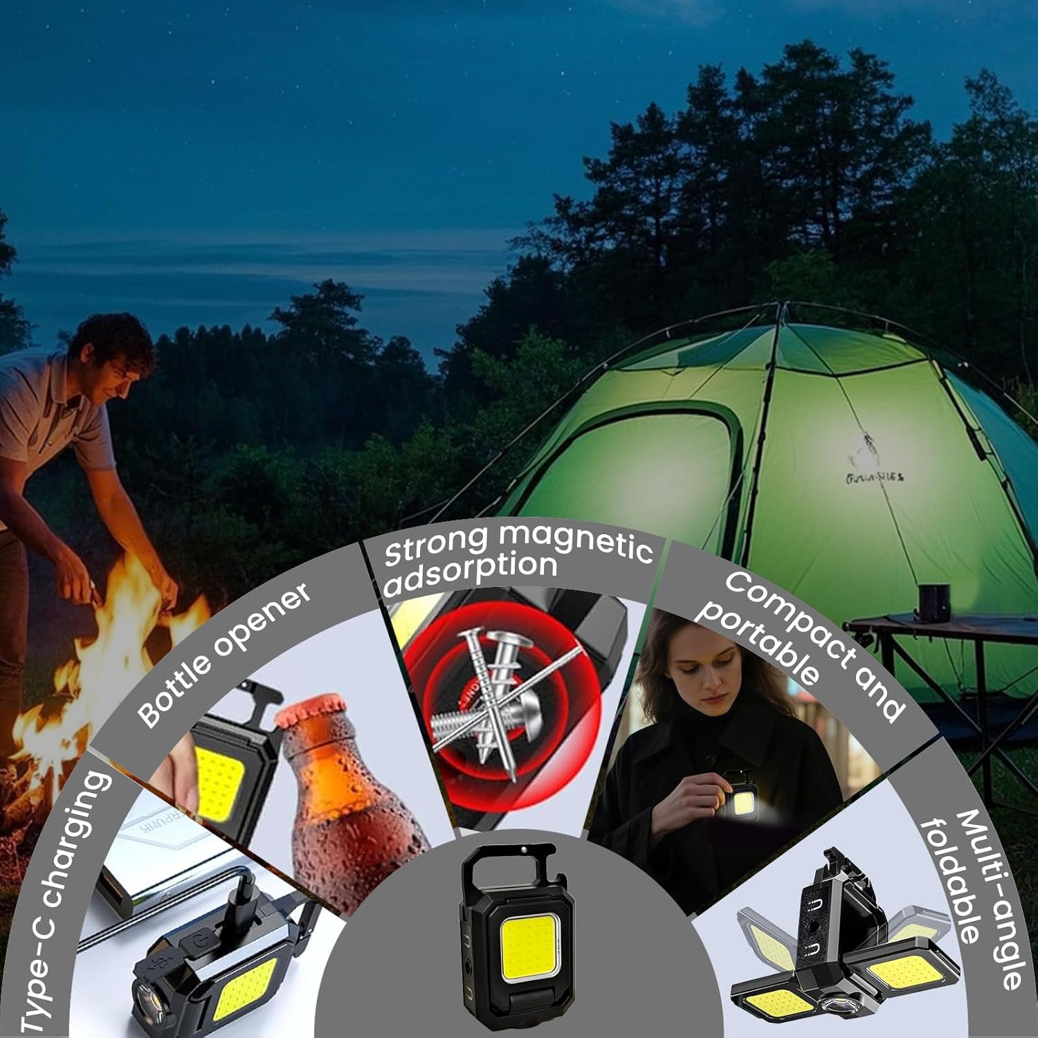 Easy to Use & Hands-Free Installation : Simply unfold to turn on and fold to turn off. The integrated top hook allows for easy hanging on tents, trees, or backpacks. The backside magnet enables secure attachment to most metal surfaces. Also functions as a bottle opener