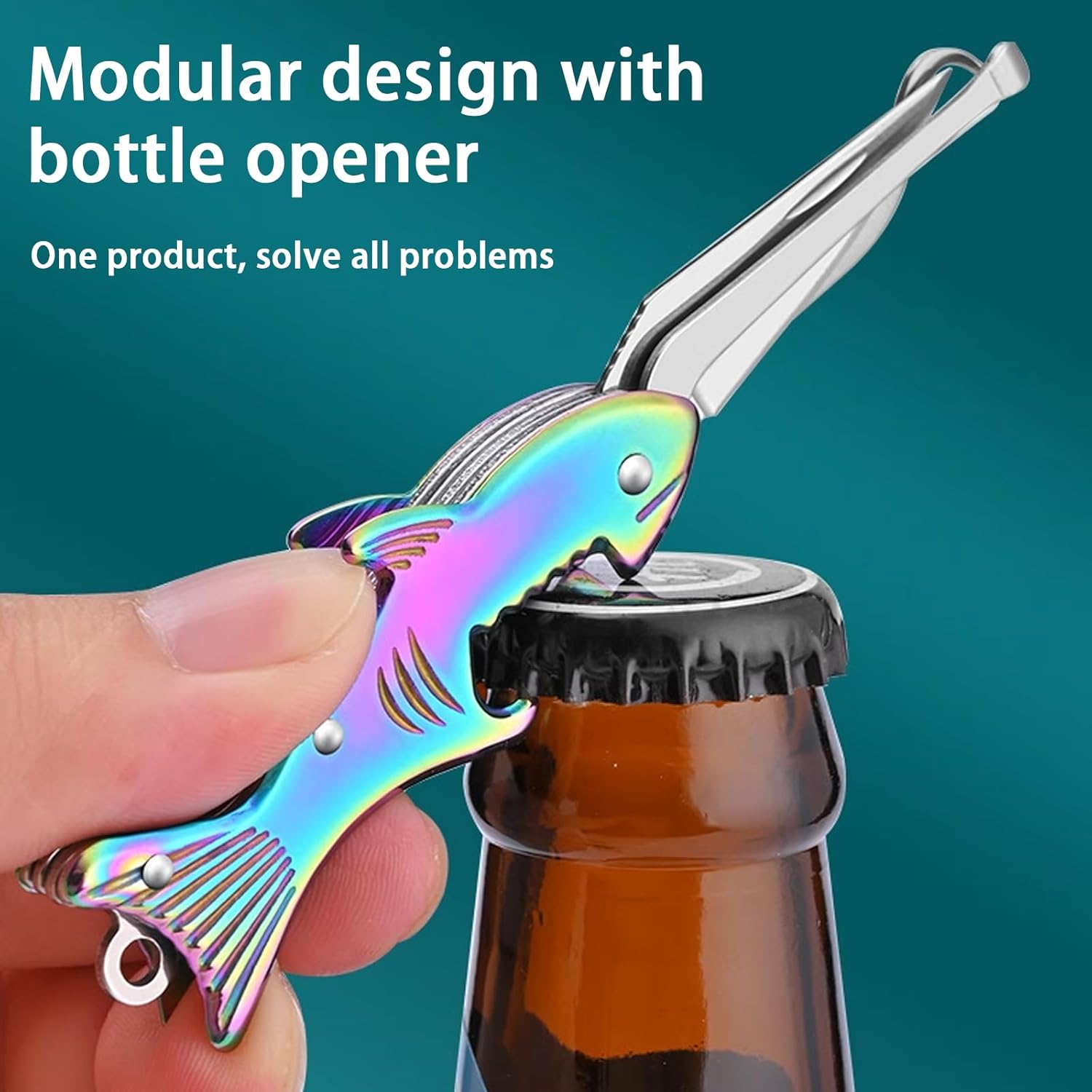 π¦ Unique Shark Shape Multi-Tool β Inspired by a versatile multi-tool, this sleek shark-shaped tool folds into a compact keychain β includes a built-in bottle opadditionalfor extra convenience.