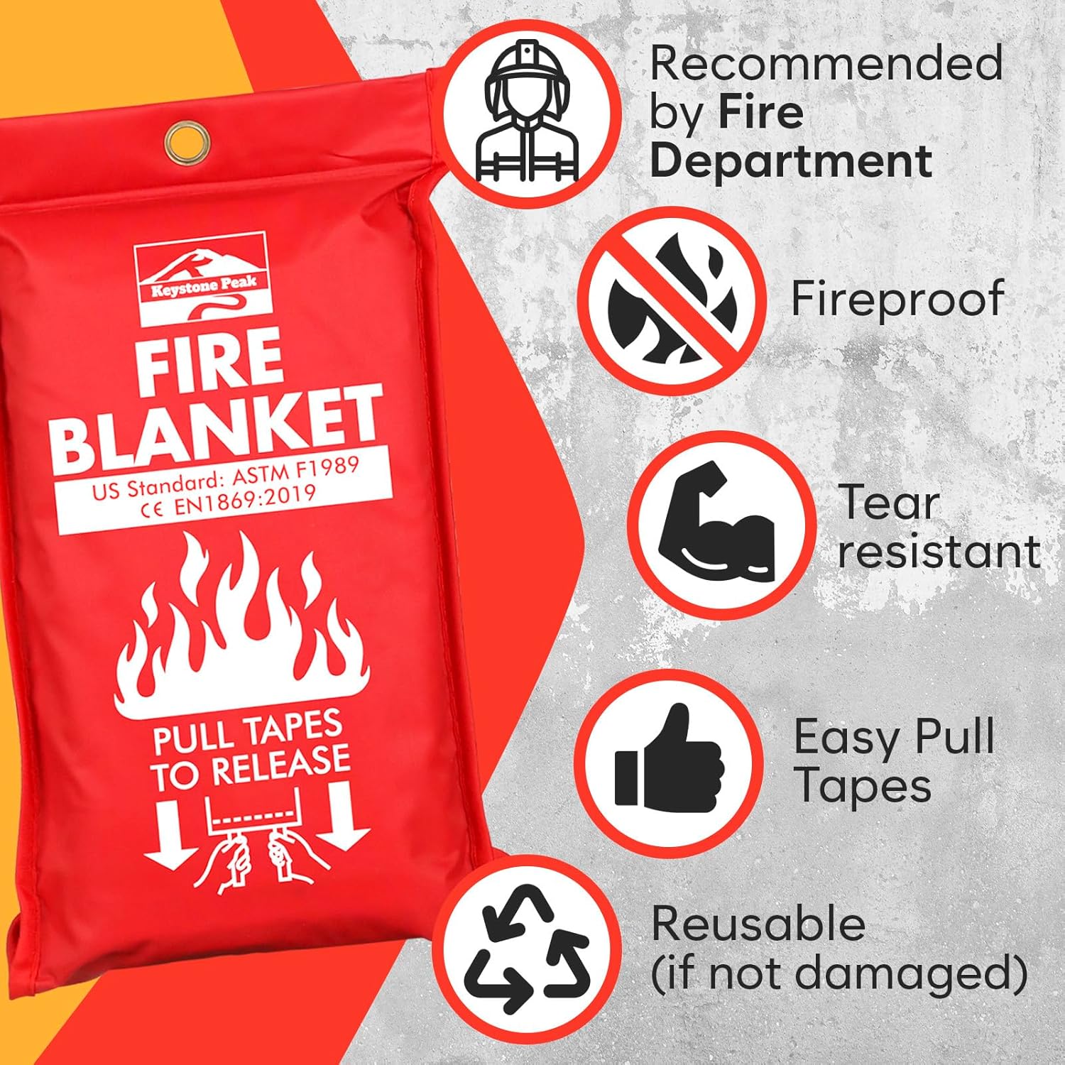 π‘οΈ US STANDARDS COMPLIANT: Made from 100% quality flame retardant fiberglass. Our emergency fire blankets are designed in the USA and conform to US and CE safety standards (ASTM F1989 & EN 1896:1997). They can resist to extremely high temperatures up to 1080Β°F.
