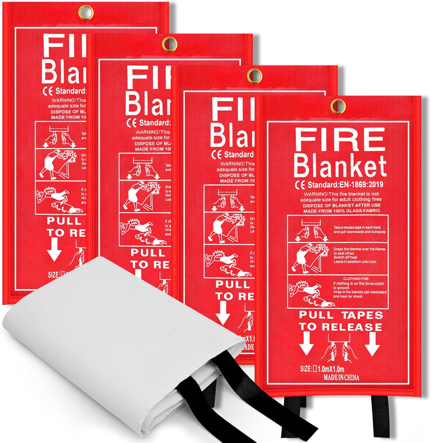 Wide Range of Uses: 4 pack fire blanket for home and kitchen (40x40inches). The emergency survival fire blanket is perfect for home, kitchen, fireplace, barbecue, car, school, office, warehouse, outdoor camping, etc. As an fire safety blanket, every family needs it, but we hope you will never use it