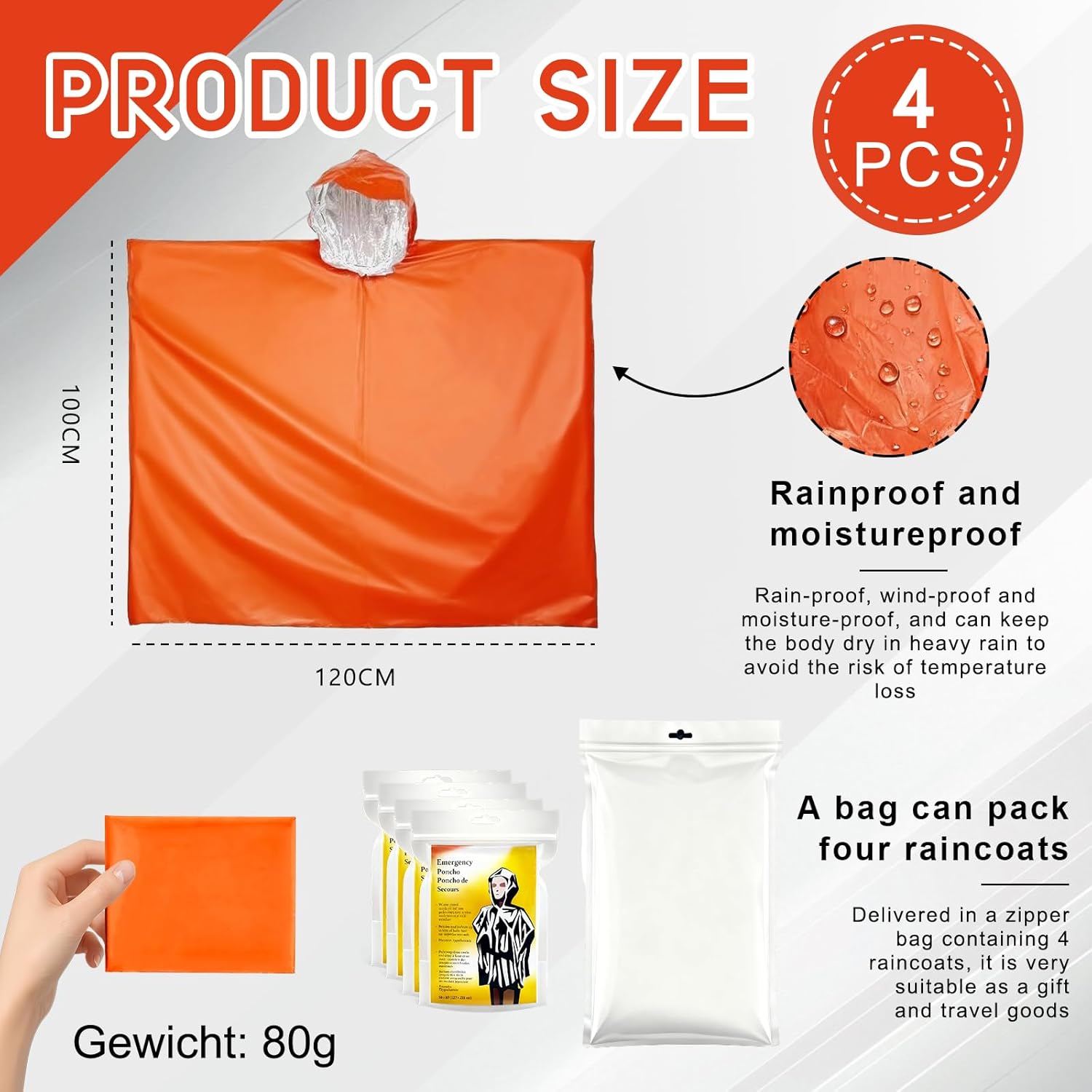 🥾 4 Pack Emergency Rain Ponchos, Emergency Insulation Blanket, Portable Outdoor Kit, Hurricane Preparedness Items, Waterproof, Windproof, Suitable For Camping Gear, Outdoor Travel(Orange) — Review, Key Features & Current Price