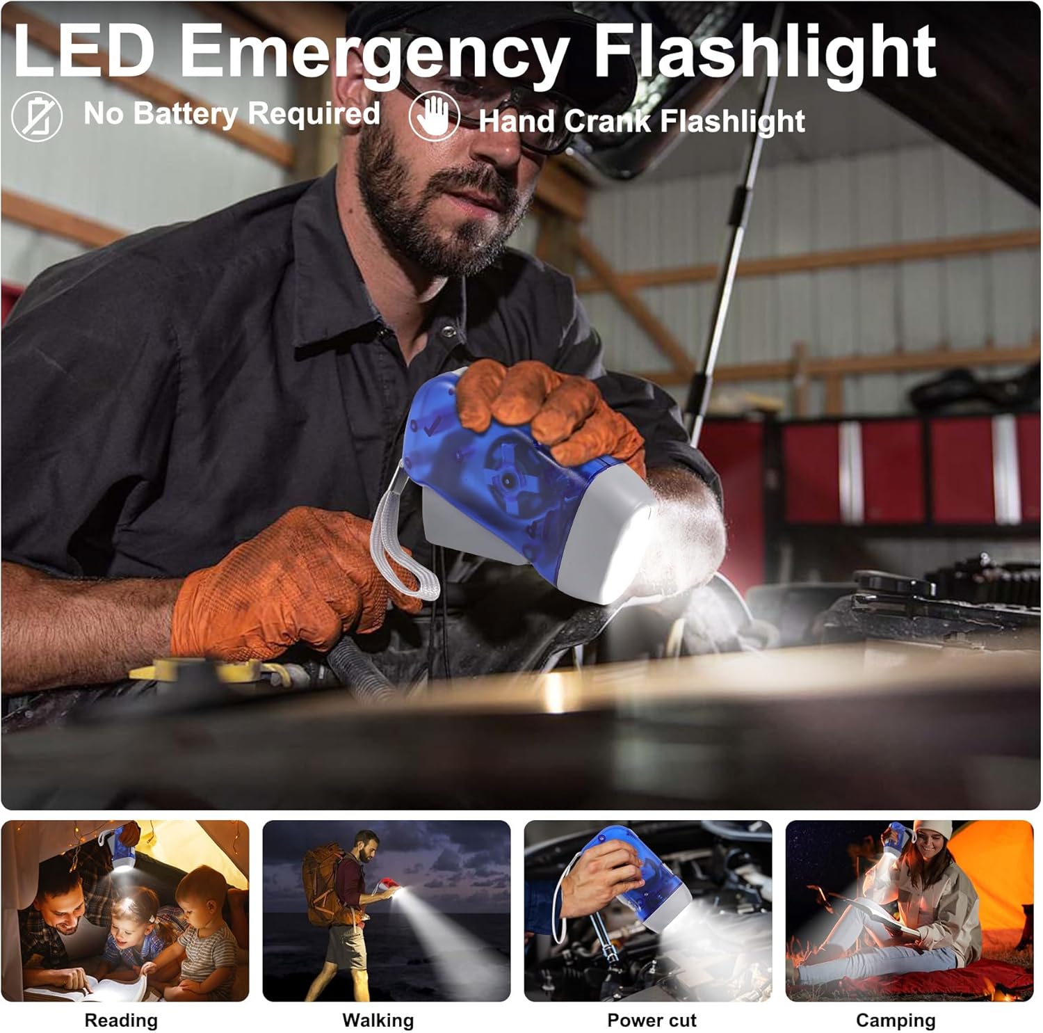 【4-Pack Value】 Stash 4 pack hand crank flashlights (or use as wind up flashlight) where you need them: kitchen, car glove box, survival kit, kids’ bag. No more hunting for a light when it matters.