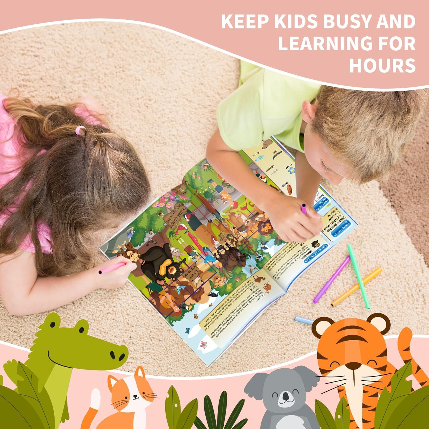 Great Present for Kids 4-8: Children will enjoy hours of fun as they search for animals in the zoo, in the jurassic, in the forest, in the ocean. Help kids learn more animal knowledge and improve the seek skills!
