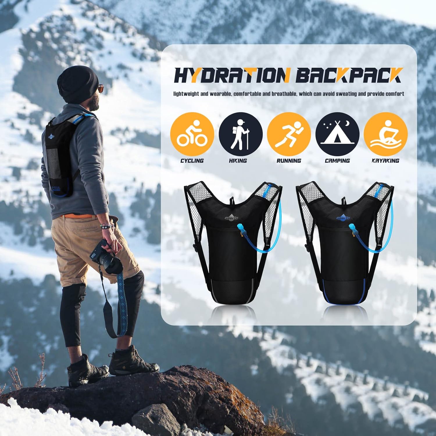 Rich in Quantity: you will receive 4 pieces hydration backpacks in 2 colors, each hydration backpack pack is equipped with a 2L water bladder, lightweight and windproof, which will not add any burden on your back, suitable for both men and women