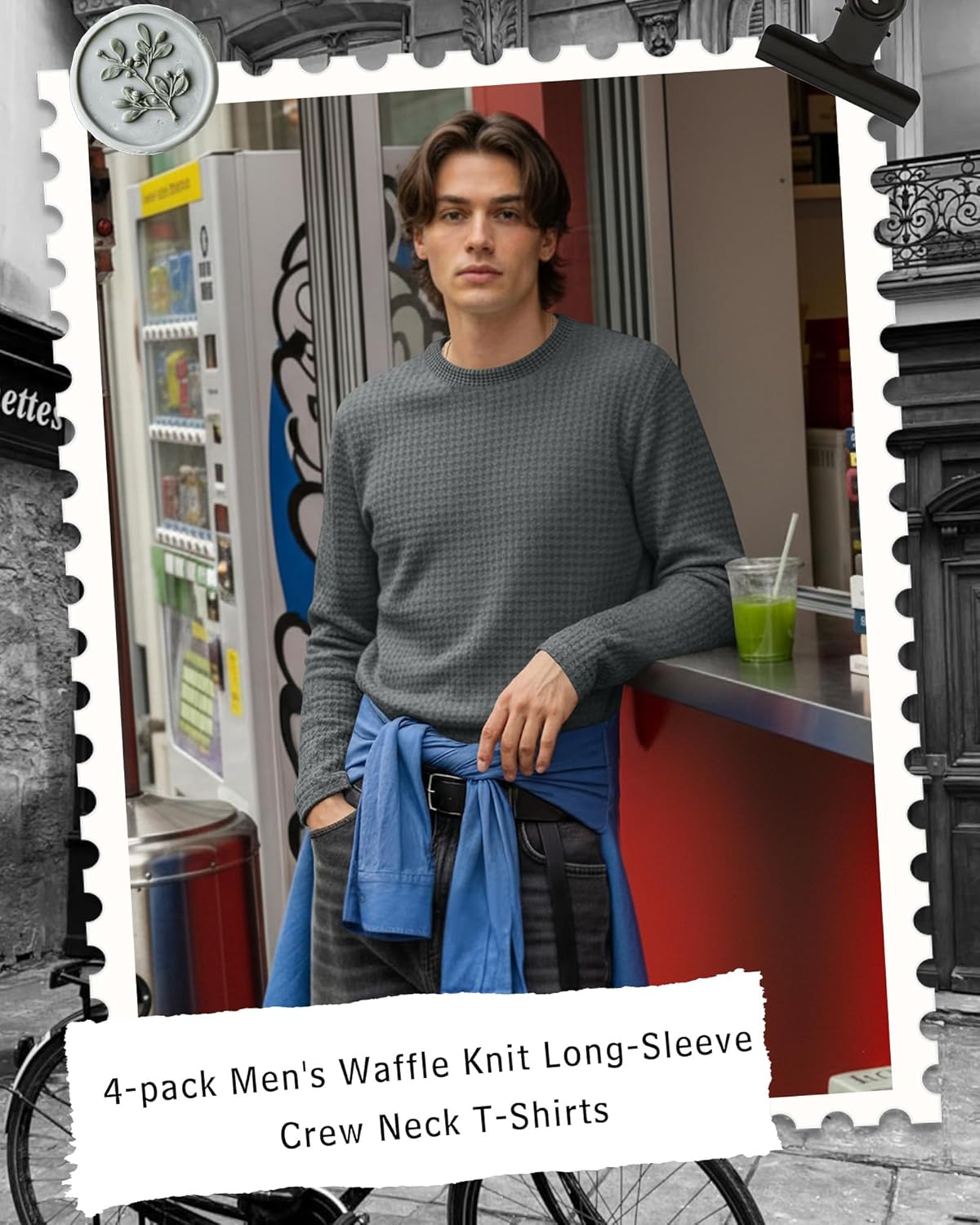 🥾 4 Pack Men’s Waffle Long Sleeve Shirts Crew Neck T-Shirts Casual Thermal Tops Lightweight Undershirts — Review, Key Features & Current Price