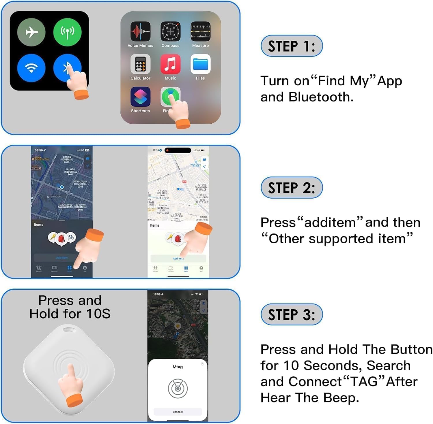 【Easy To Use】This mini car tracking device requires no SIM card, no subscription, and no monthly fees.download the Find My app and connect directly to use it straight away. Turn on Bluetooth, open the “Find My” APP-item-add items-other supported items-Connect tag