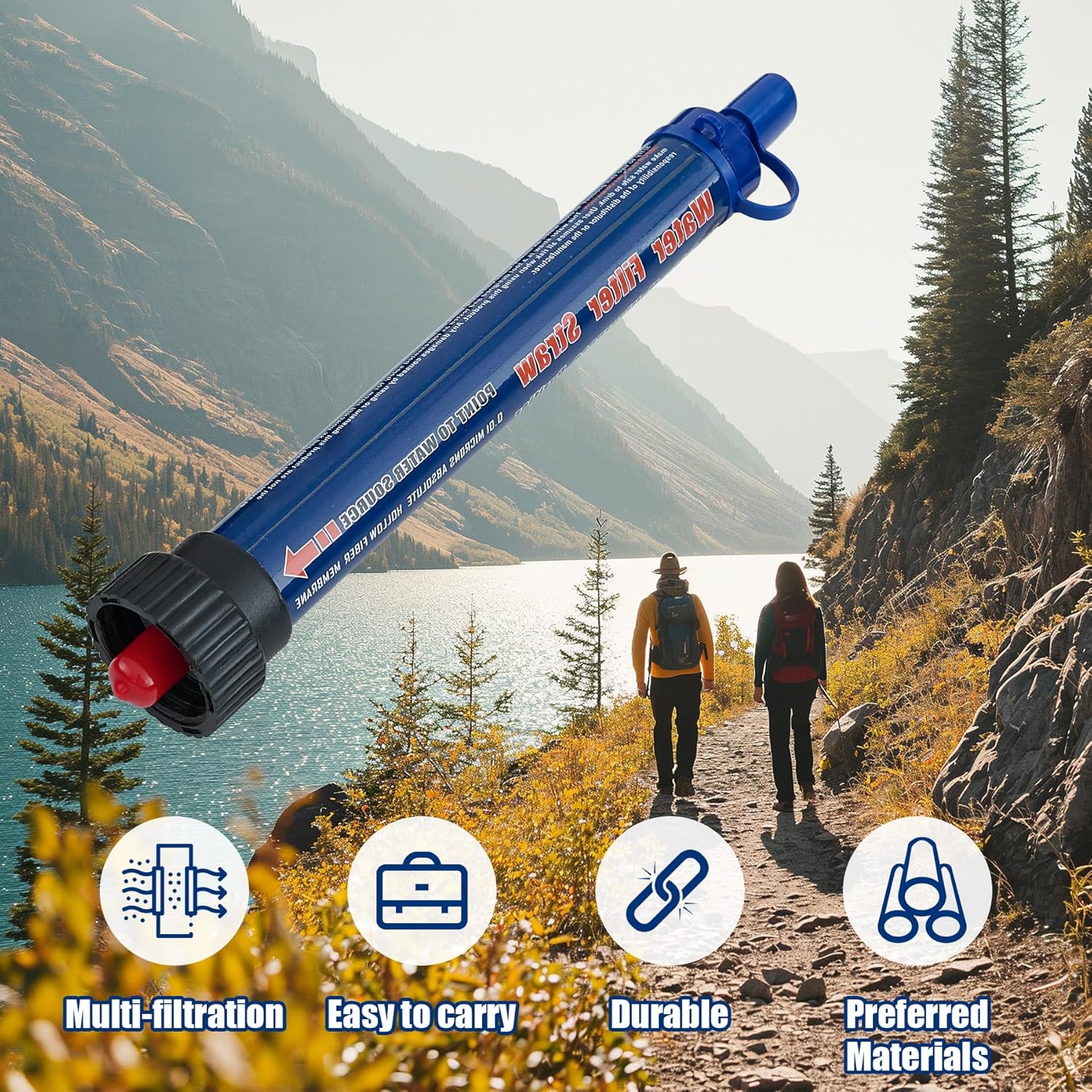 Includes: water filter straw (7.1 inch x 0.9 inch)x 4 , lanyard x 4, 18cm telescopic extension tube x 4